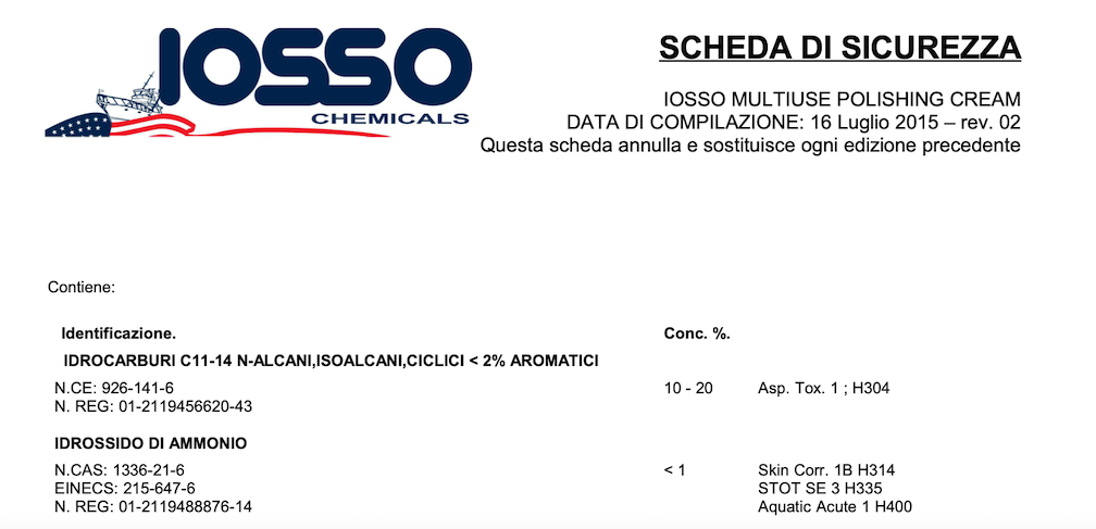 La Iosso contiene anche non meglio specificati composti aromatici che aiutano molto nell'azione pulente, il Sidol contiene del triammoniocitrato che con la sua azione chelante aiuta nella pulizia dei metalli (ma qui potrei sbagliare perché ormai di chimica ricordo più nulla o quasi
