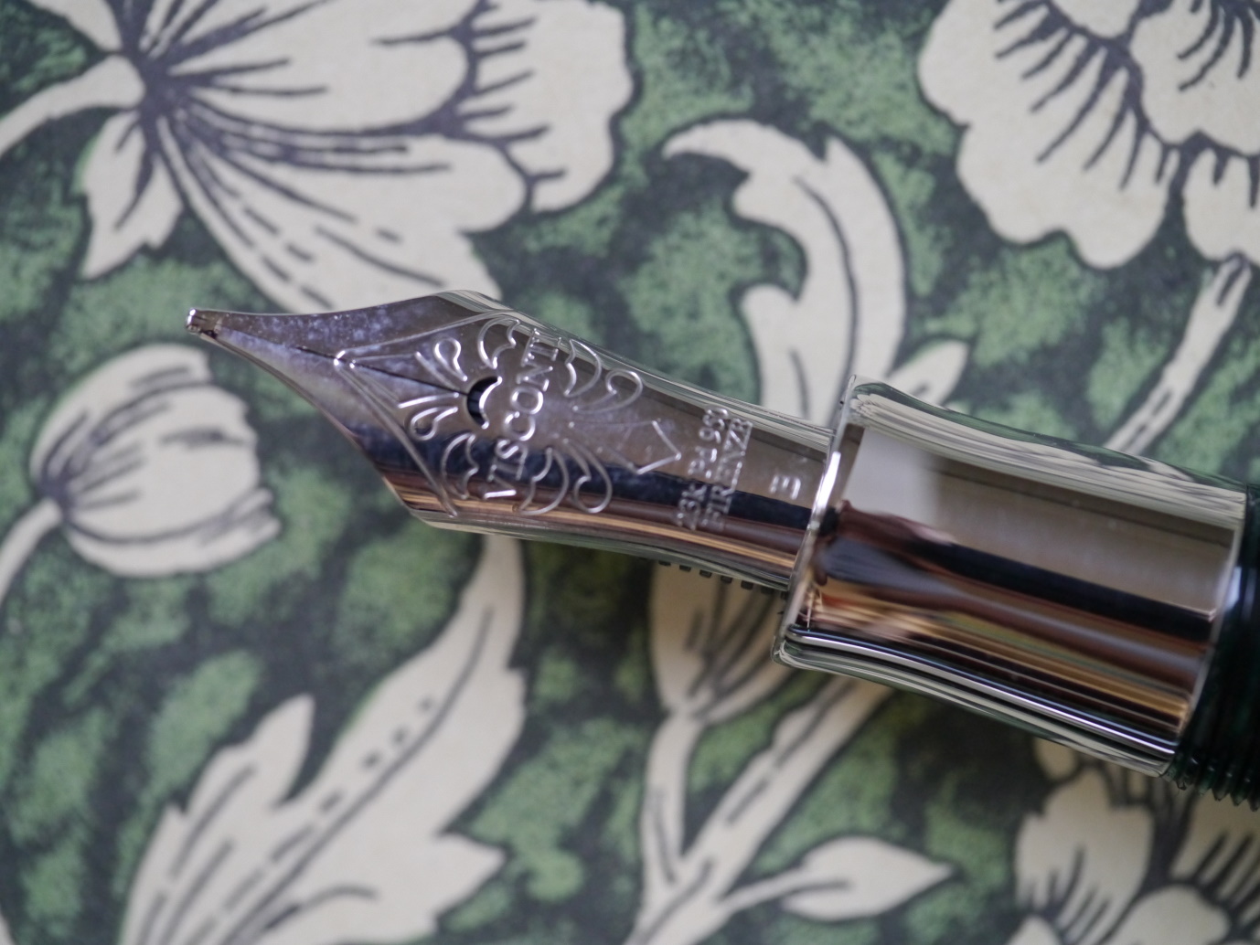 Il pennino: l'esemplare in mio possesso (abbastanza datato) ha un pennino 14K d'oro di gradazione F che mi ha sorpreso per due motivi: 1) come per la Lamy persona recensita recentemente, si tratta di un pennino molto molleggiato, e che garantisce un ottimo feeling nella scrittura; 2) il pennino rispetta la sua gradazione, il tratto è infatti un fine che va verso più l'extrafine che non verso il medio come capita spesso. Il flusso è adeguato e la penna non ha alcuna esitazione o salti durante la scrittura.
