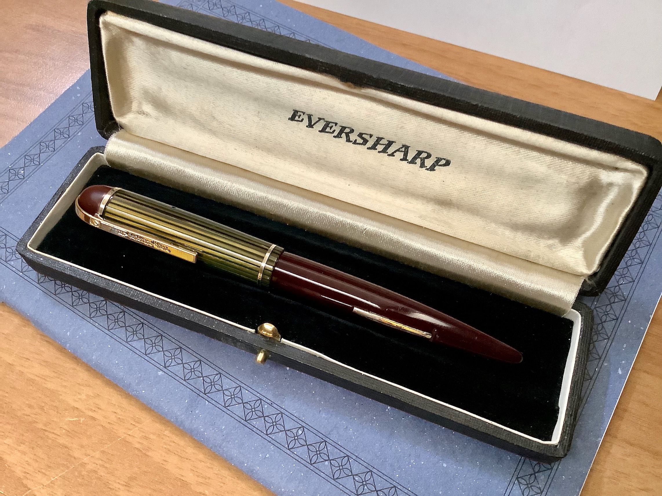 Bokeh, questa colorazione e quella rossa con cappuccio in celluloide striata rossa trovo siano le più belle. Ci sono comunque una miriade di versioni, penso di poter dire che sia la penna con maggiori varianti prodotta da Wahl Eversharp.
