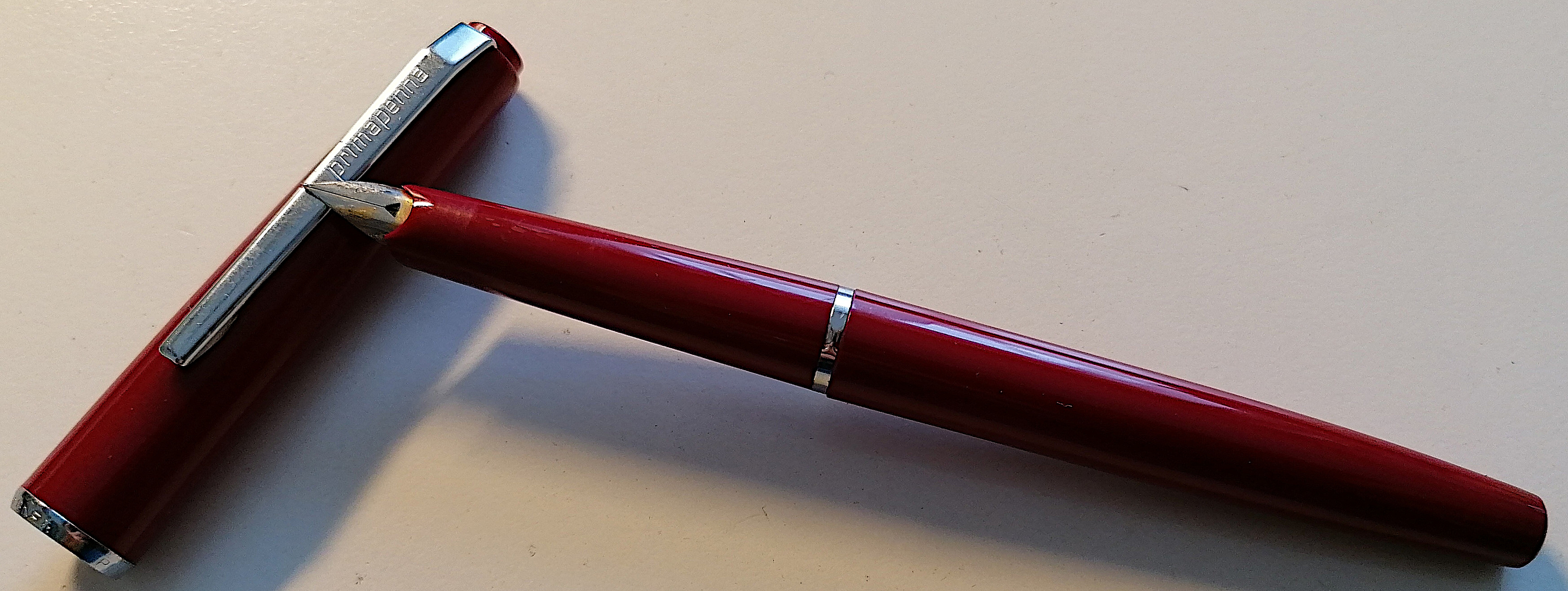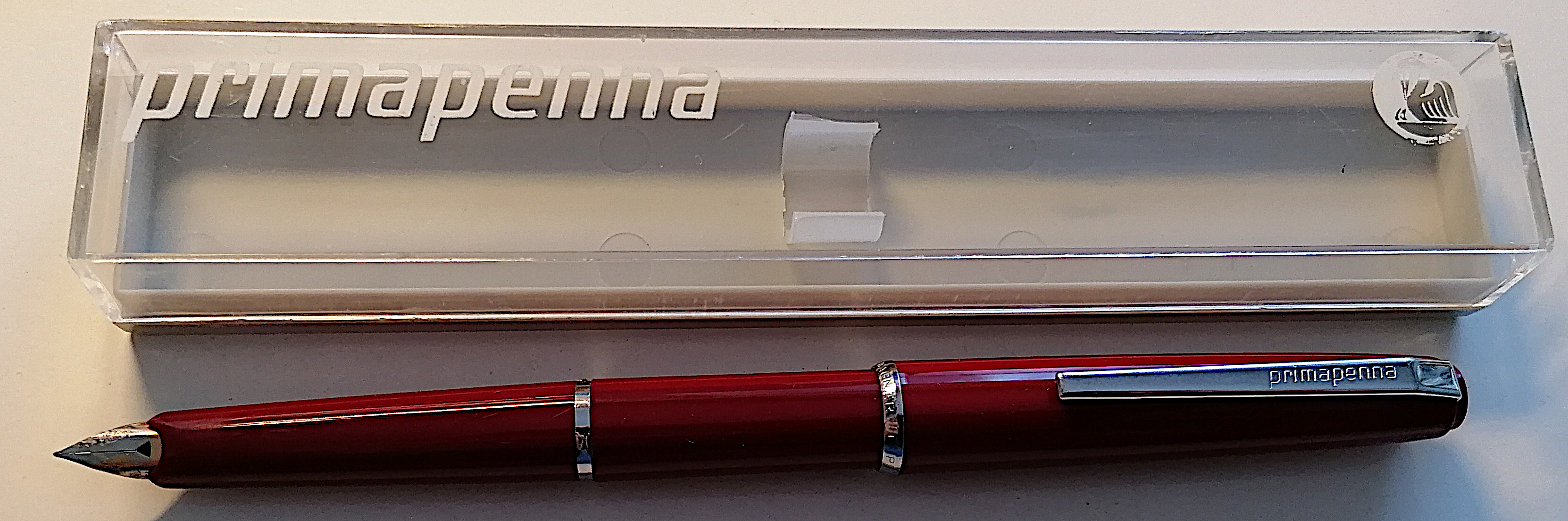Arrivo al punto: in un mercatino sono stato attirato dal bel colore burgundy di questa primapenna nella sua scatola in plastica trasparente, penna decisamente diversa da quella descritta sopra.