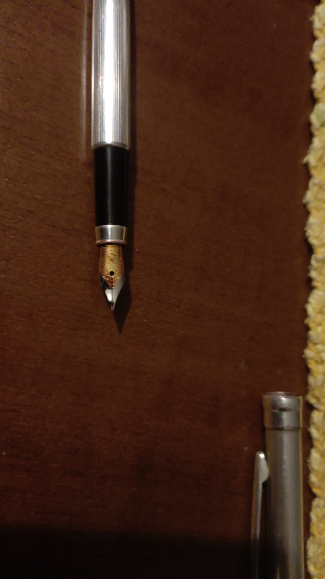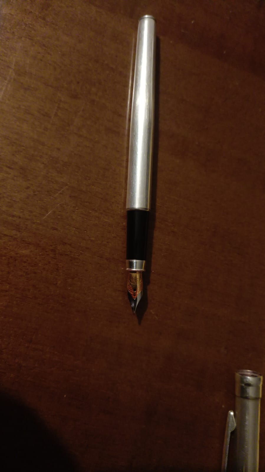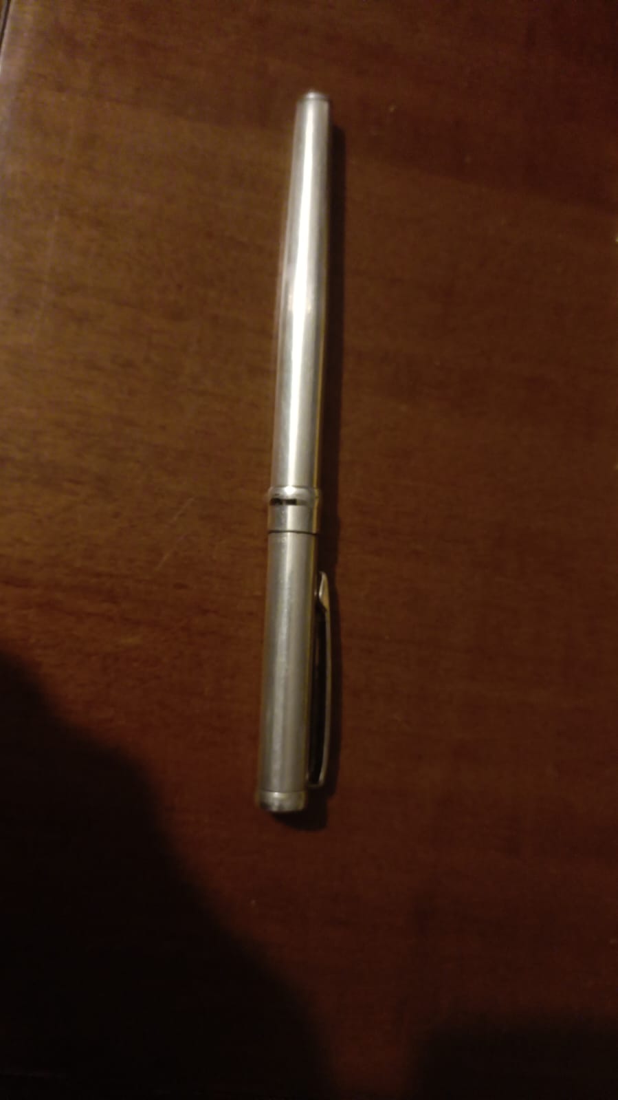 Mi è stata data questa penna marchiata Settelaghi in argento che, in seguito ad una caduta, ha il pennino rovinato. Si è piegato in basso ed il proprietario "a mano" lo ha raddrizzato. La penna scrive ma si vede chiaramente che il pennino non tocca bene l'alimentatore, restando leggermente sollevato verso la punta, quindi vorrei sostituirlo.