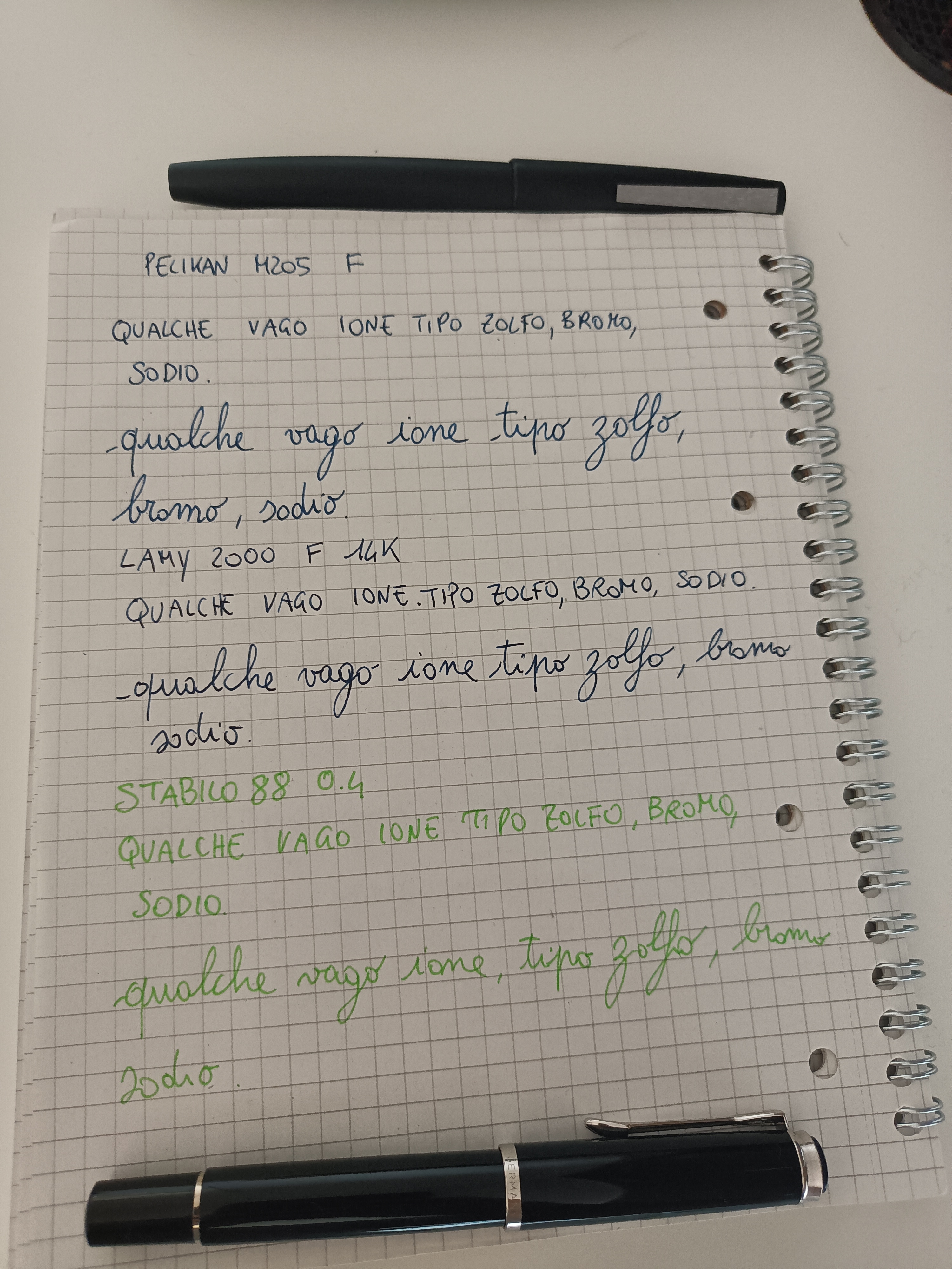 Quindi per me se vuoi avere una penna che ti permetta di scrivere anche su carta di qualitá medio/bassa e vuoi una Pelikan allora al MASSIMO prendi un pennino Fine, magari abbinaci anche un inchiostro dal tratto "contenuto" ad esempio i Pelikan 4001 blu, nero, marrone o magari un Noodler's X-Feather ( prima di comprare l'inchiostro però provala, magari ti capita un colpo di fortuna e la penna è già "misurata" di suo).