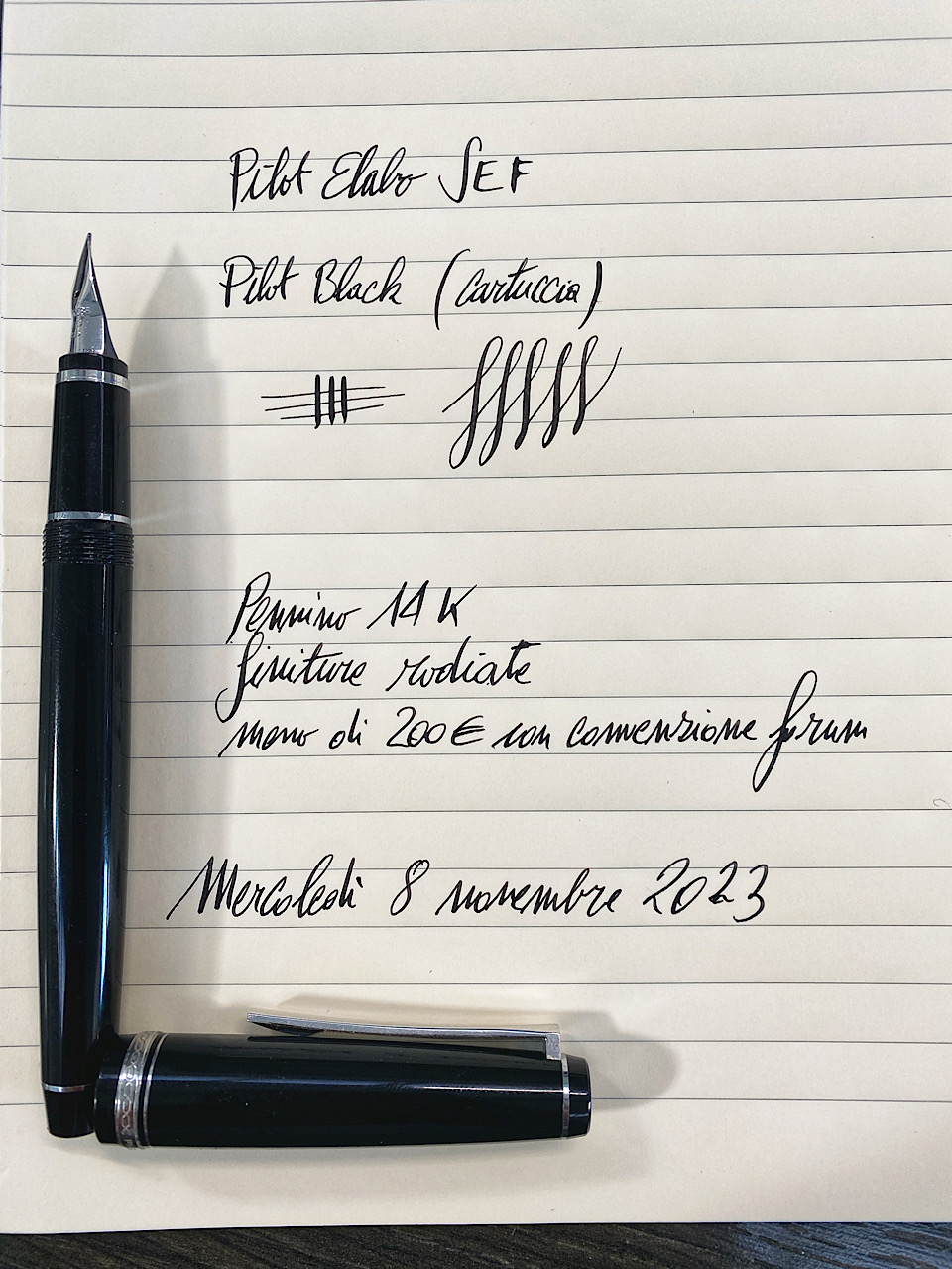 PS: una alternativa più economica, piccola e con un look anni settanta con pennino leggermente flessibile ma che non arriva ai livelli dell'Elabo è la Pilot Elite 95S EF.
