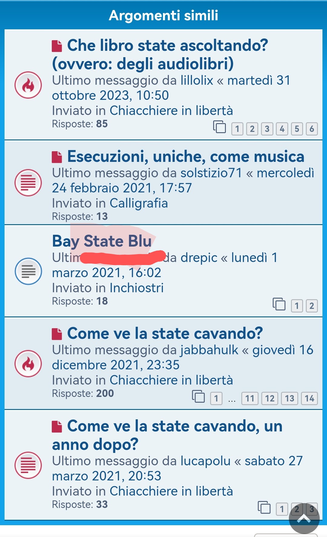 In questa sezione si possono affrontare gli argomenti più vari NON attinenti il mondo delle penne e della scrittura, ma soltanto quelli. Tutto quello che riguarda le stilografiche e gli altri argomenti del forum per cui esistono delle sezioni specifiche del forum NON deve essere inserito in questa sezione. Fa eccezione l'argomento "Il mio ultimo acquisto" in in cui è consentito citare l'ultimo acquisto di una stilografica (nelle modalità indicate qui).