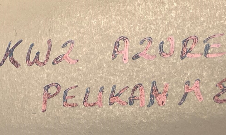 blu diversi, ma io trovo "brillanti" sia il KWZ Azure #2, un blu neutro, saturo, con una quasi impercettibile sfumatura al teal, e il Diamine ASA, un blu leggermente più chiaro, anche lui piuttosto saturo, con una leggera sfumatura al turchese.