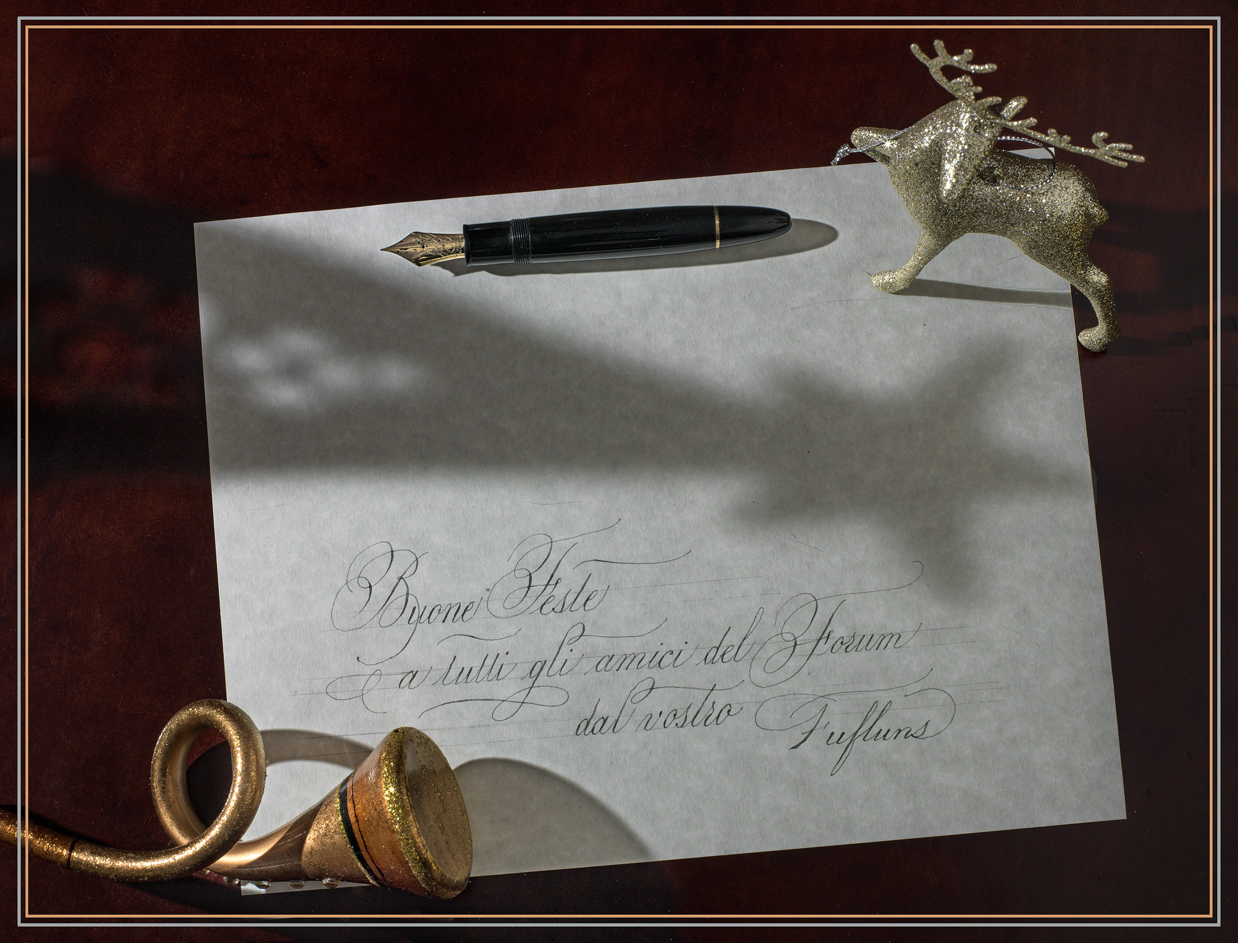 buone feste a tutti, che il Natale e il nuovo anno ci portino maggiori occasioni per frequentare la bianca e sommessa lingua della carta e per curare reciprocamente la comunicazione facendola diventare raccoglimento. Insomma, per utilizzare il sigillo di tutte le ammirande invenzioni umane secondo G. Galilei... la scrittura!!