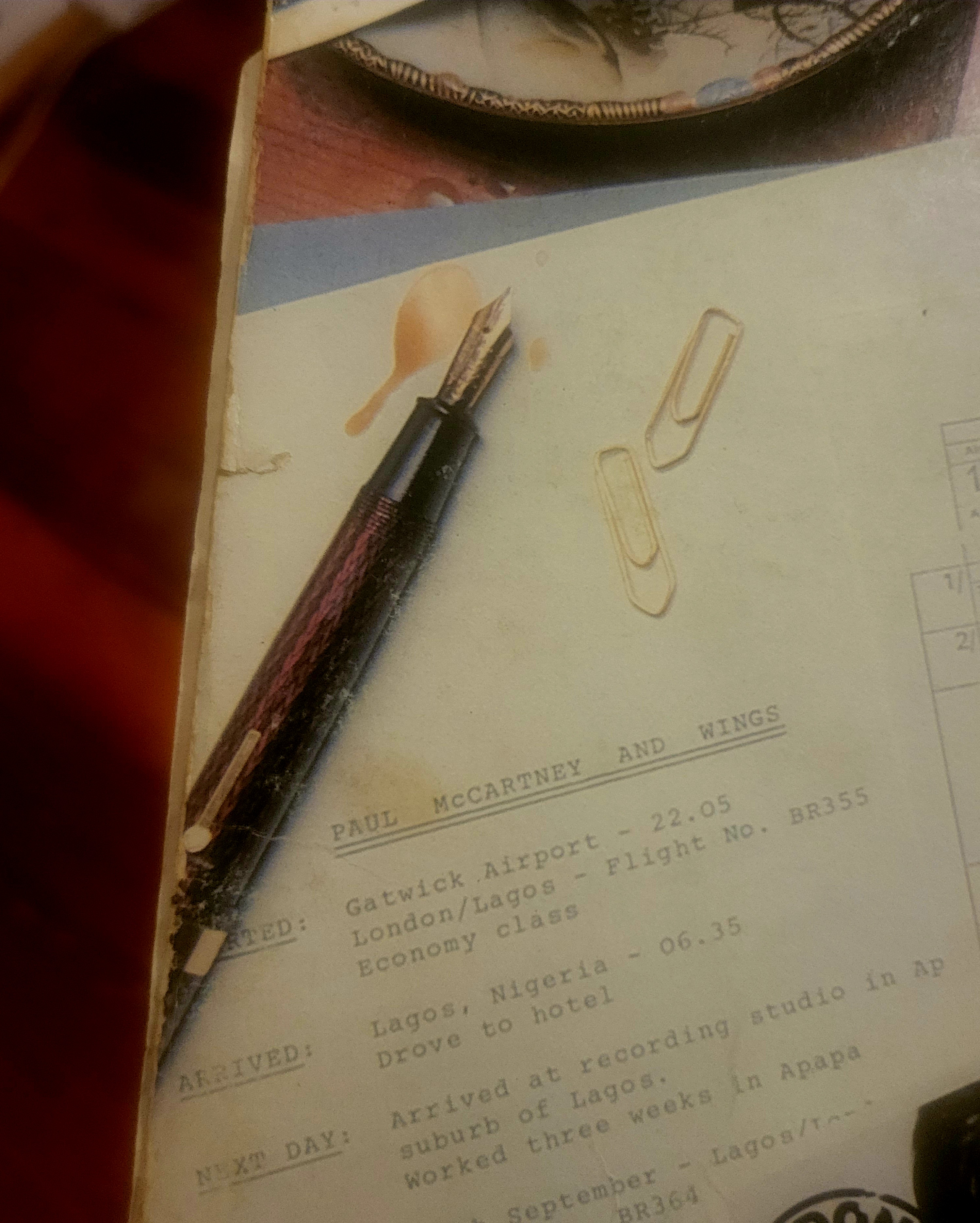 Buon anno, cari amici, stasera stavo ascoltando 'Wings Band on the Run', poi guardando il retro della copertina dell'LP per la millesima volta, ho visto una penna stilografica. Credo sia una Conway Stewart con il famoso motivo a spina di pesce rosso. Ora dobbiamo trovarne altre!