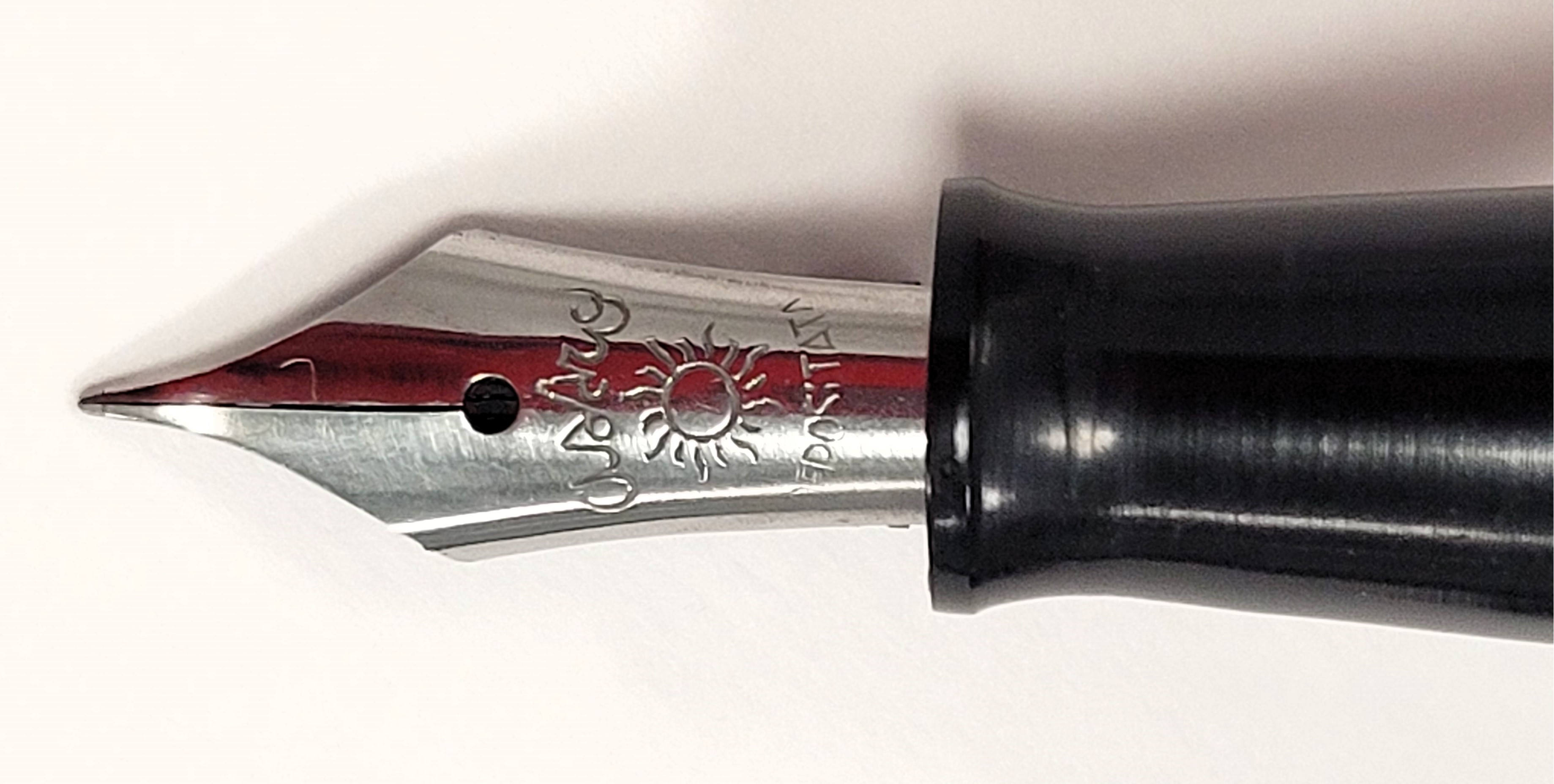 Per quanto riguarda il pennino, in acciaio, ho qualche difficoltà a capire di che si tratta, l’incisione per quanto sia leggibile è scritta con un font alquanto strano e non riesco a capire cosa sia.