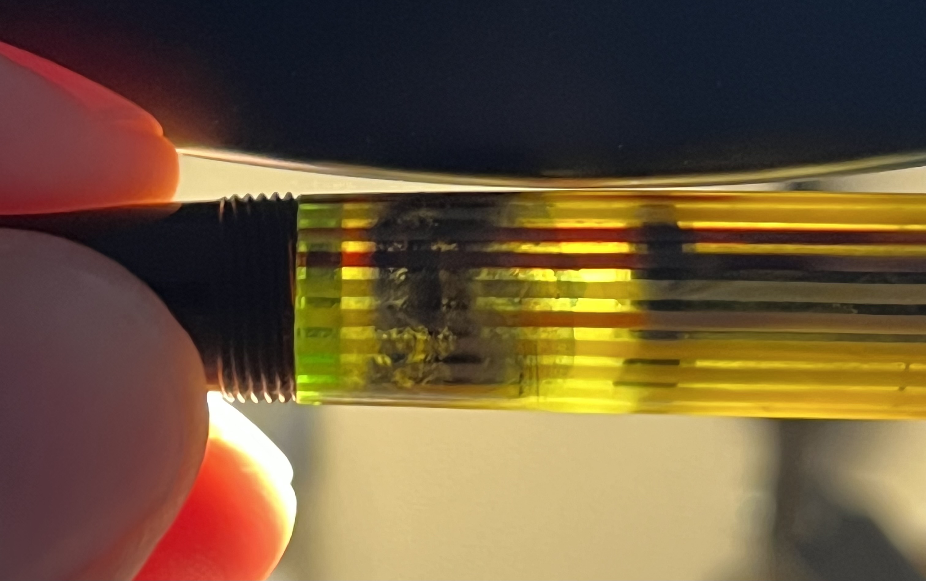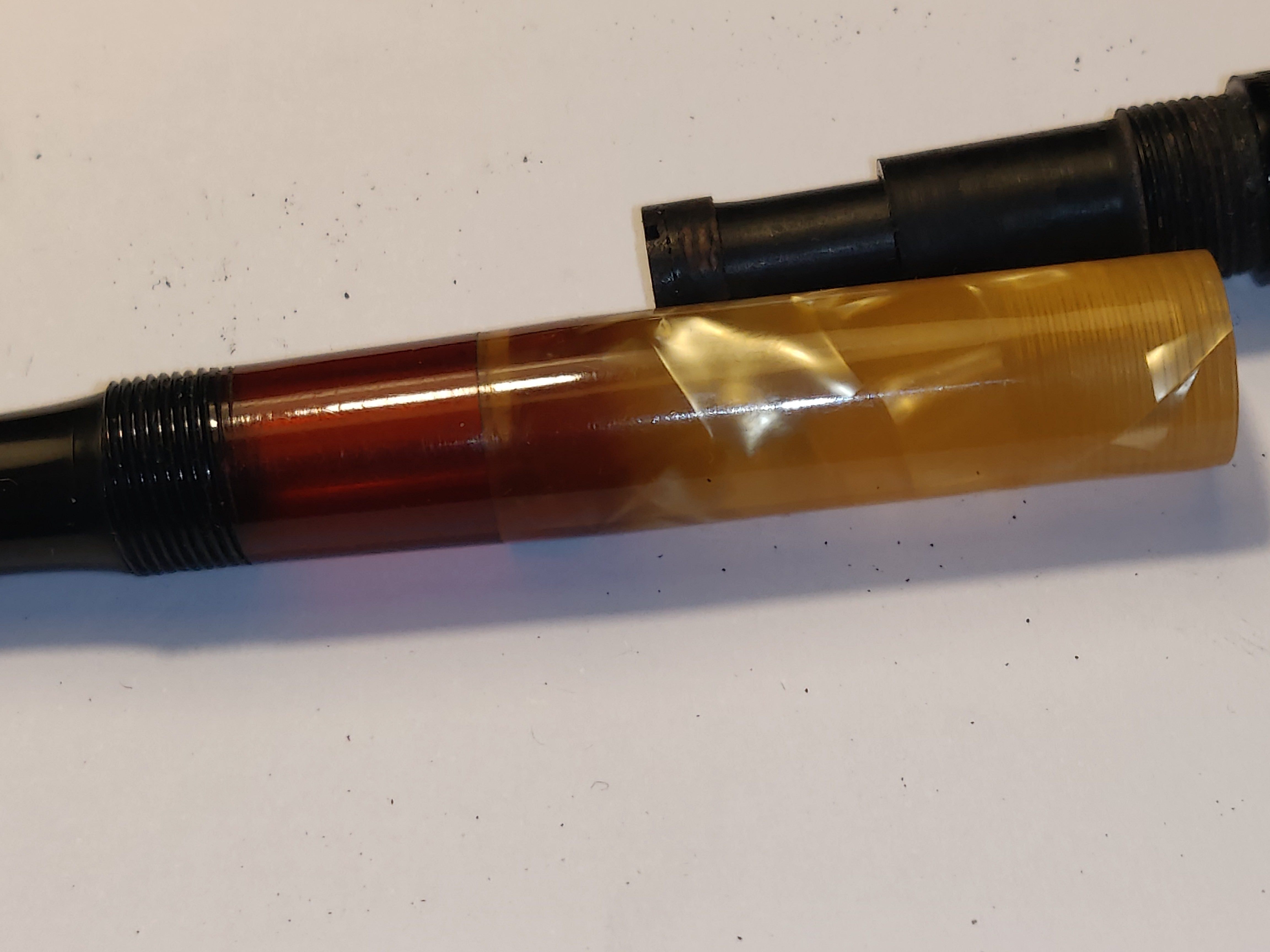 Si, lo so, non è una 400 (Columbus) ma serve a dimostrare come l'inchiostro o suoi componenti siano penetrati nella massa della celluloide e non siano solo sulla superficie interna