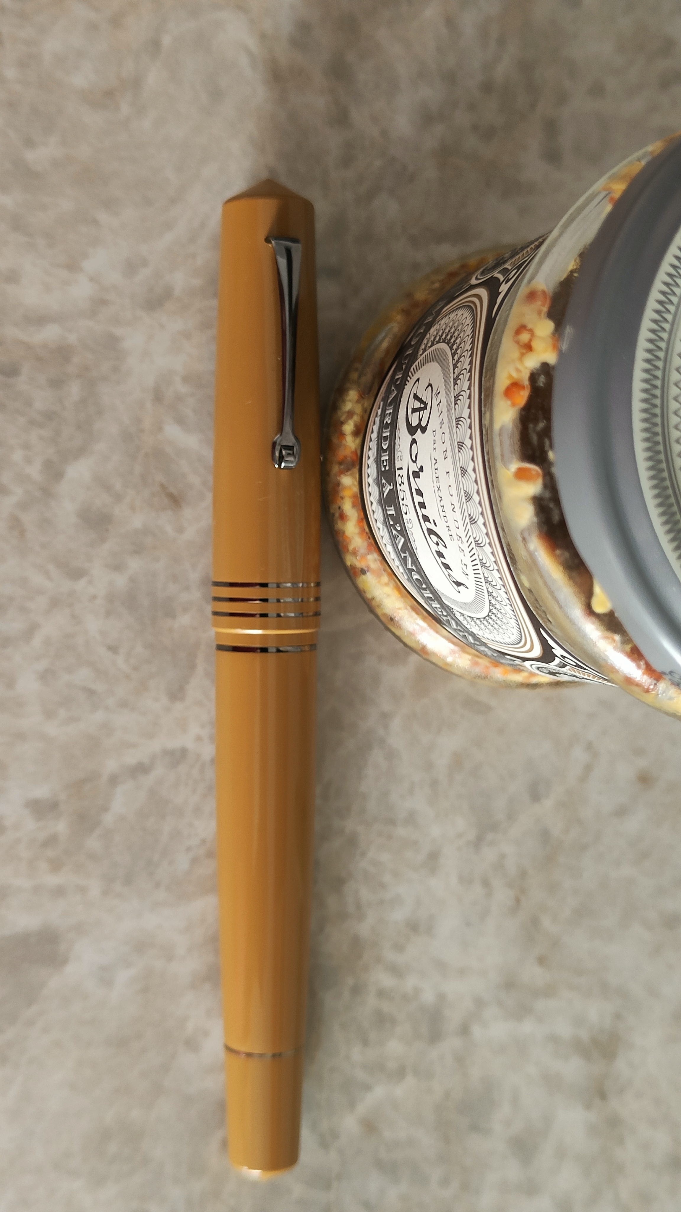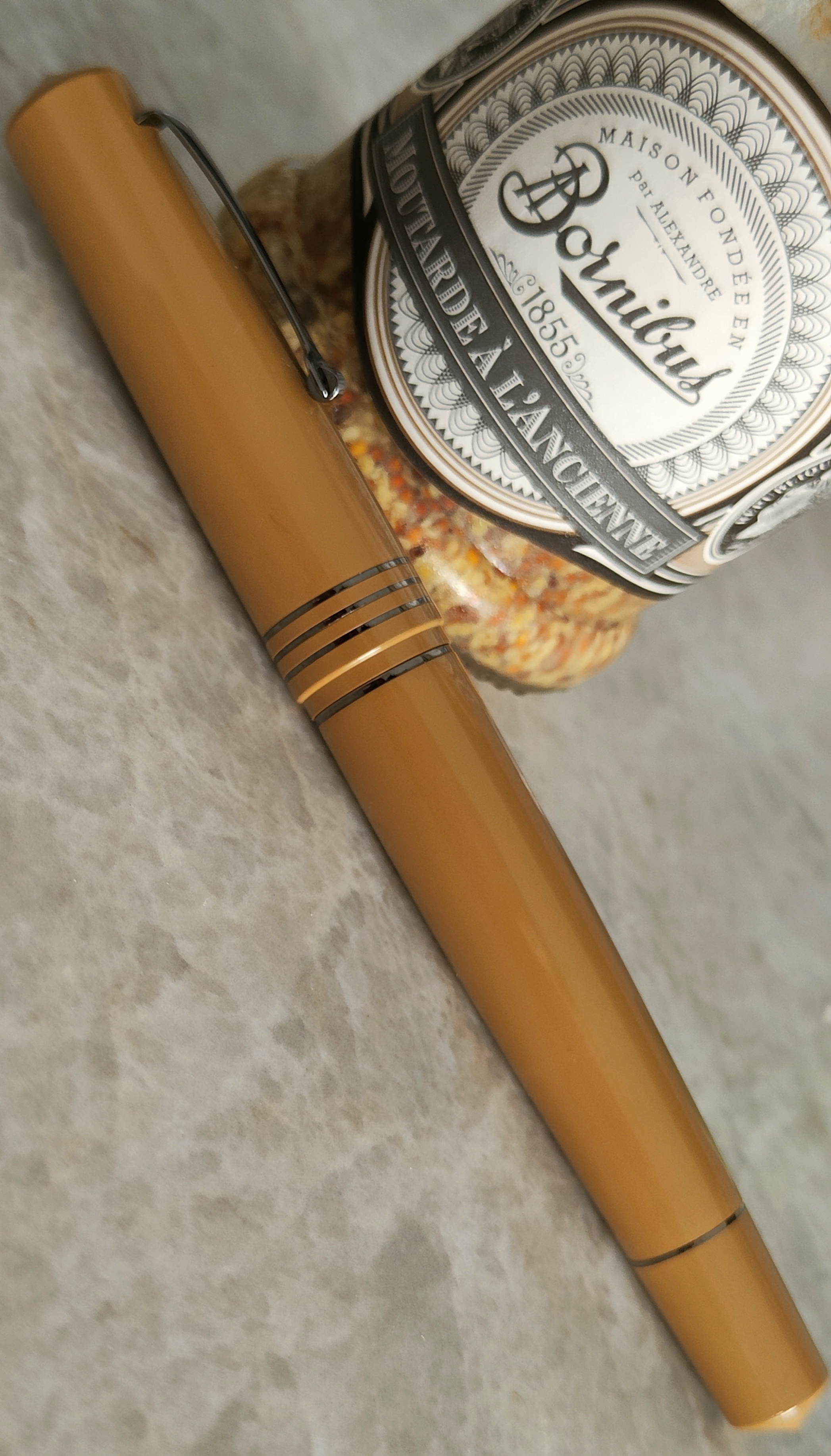L'odore di zolfo è intenso, la lucidatura è fatta a regola d'arte. Da ottobre la uso tutti i giorni e ogni volta che la prendo in mano mi devo ripetere che non è edibile! Il mio amore per la senape (finora non l'ho messa solo nel caffè, ma ci sto pensando!) mi rende il colore di questa penna irresistibile. Abbinato alle sensazioni tattili e olfattive risulta in un mix strepitoso!