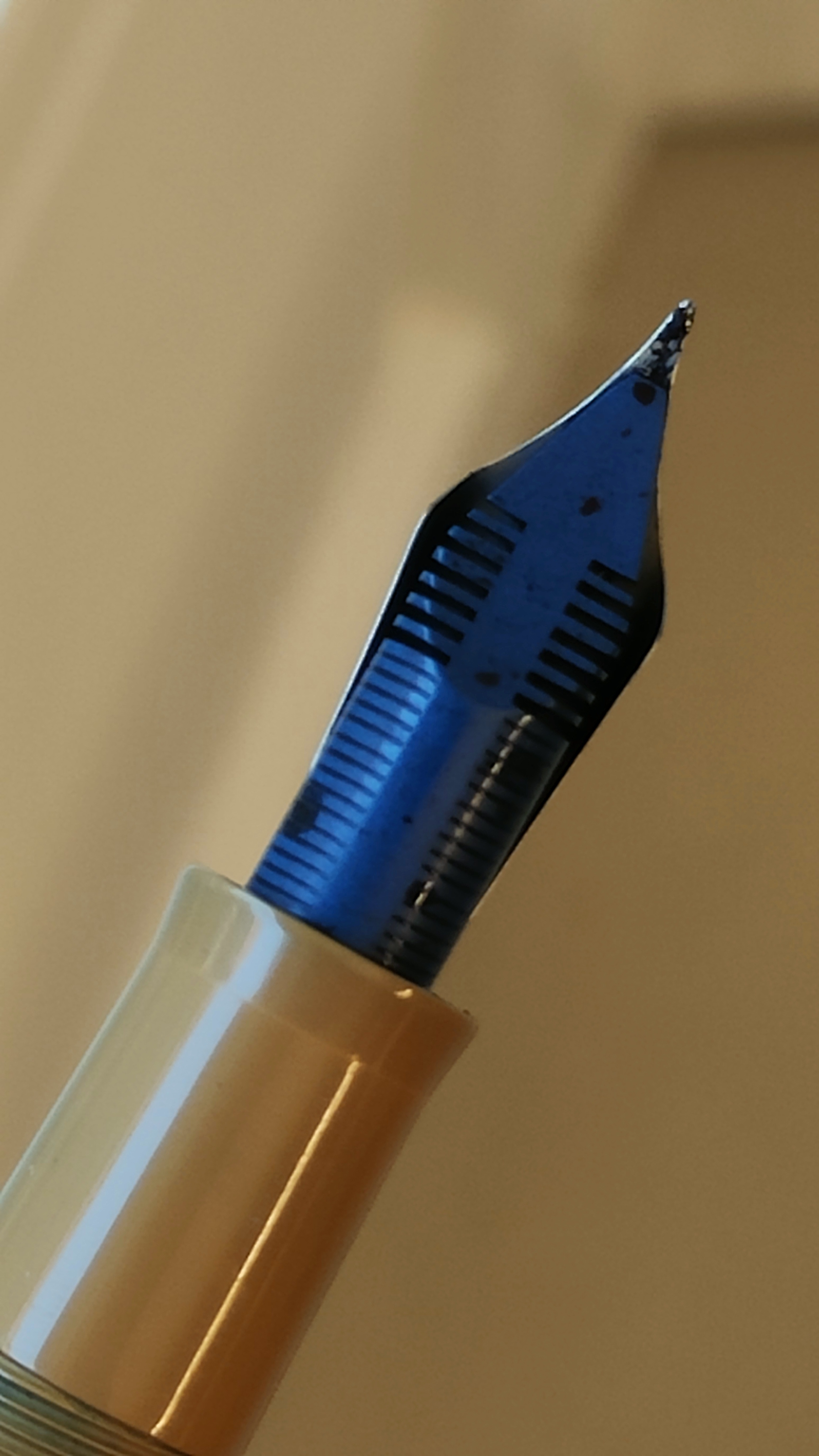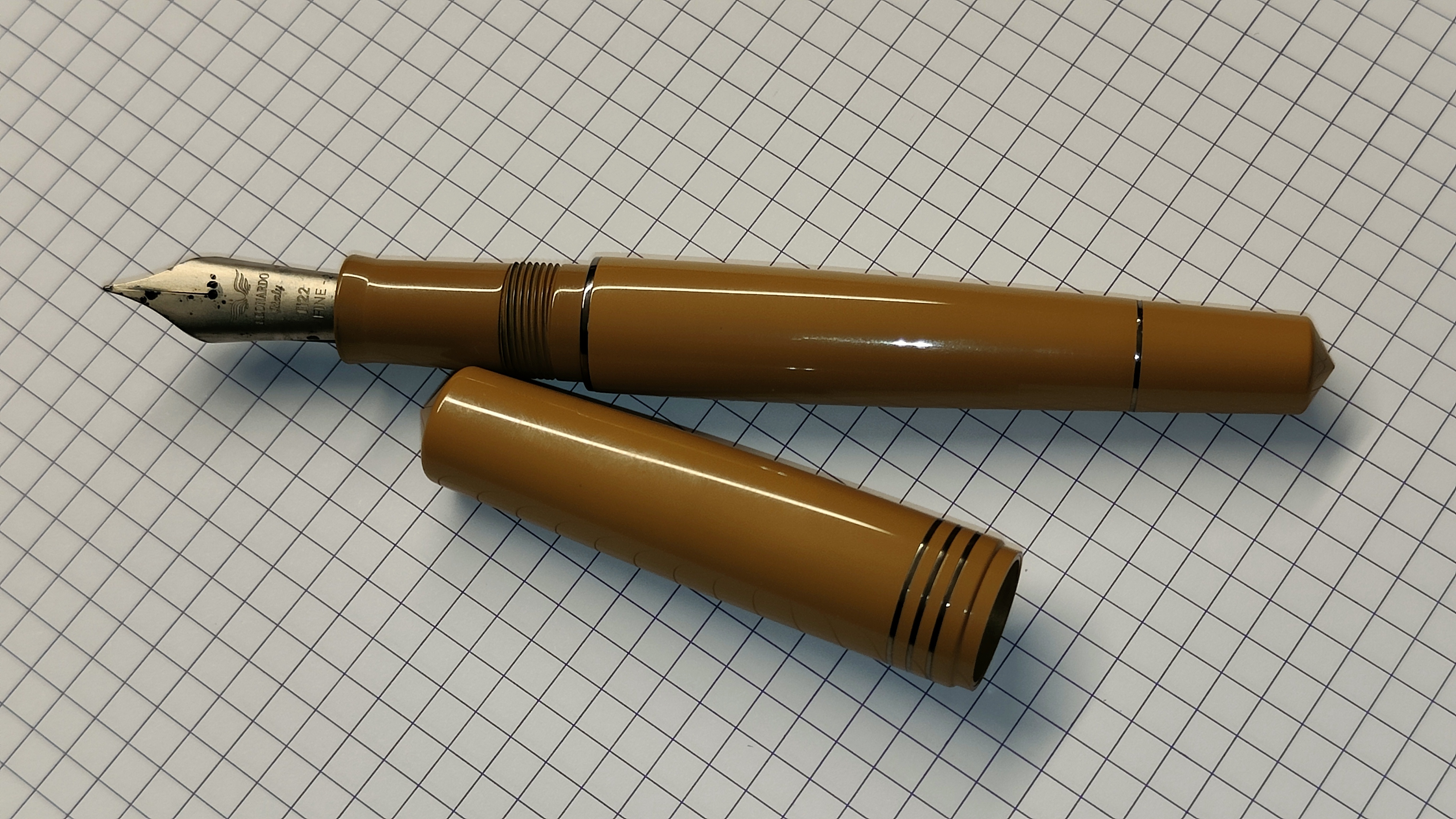 Nel caso di questa Mustard, ho chiesto un "semplice" pennino F, quindi lamina modificata ma senza alcun tipo di grinding. La sensazione di scrittura è clamorosa: sembra di scrivere con una matita B2 che però "rimbalza". Devo ammettere che come sensazione di scrittura preferisco questo pennino con tutto il suo iridio, sia per il feedback sia perché il metallo,