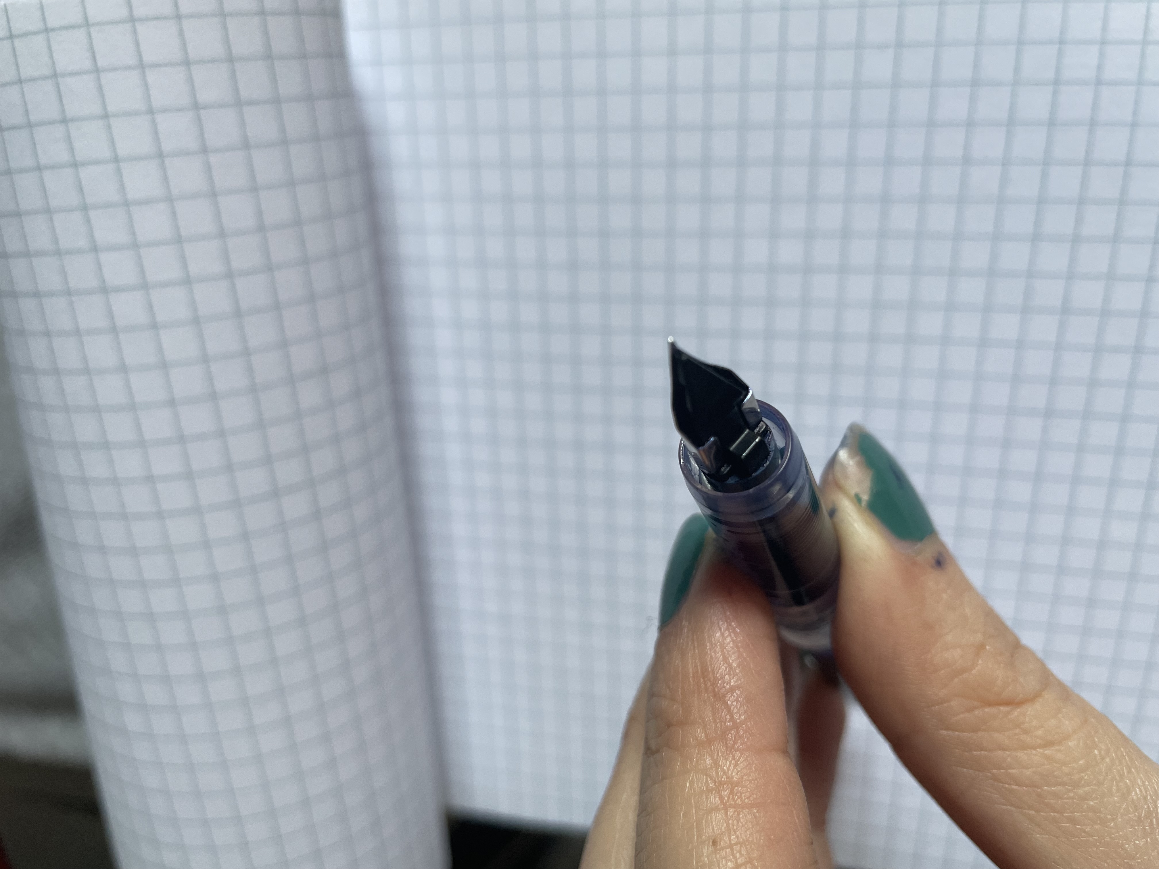Questa mattina ho voluto provare a piegarla ancora un altro pochino, ma ha totalmente smesso di scrivere, a tratti ha quale strascico di inchiostro ma nulla, e non riesco a farla tornare a scrivere, a questo punto non so se è il pennino (e se è la punta o se l’ho allontanato troppo dall’alimentatore) o quale sia il problema.