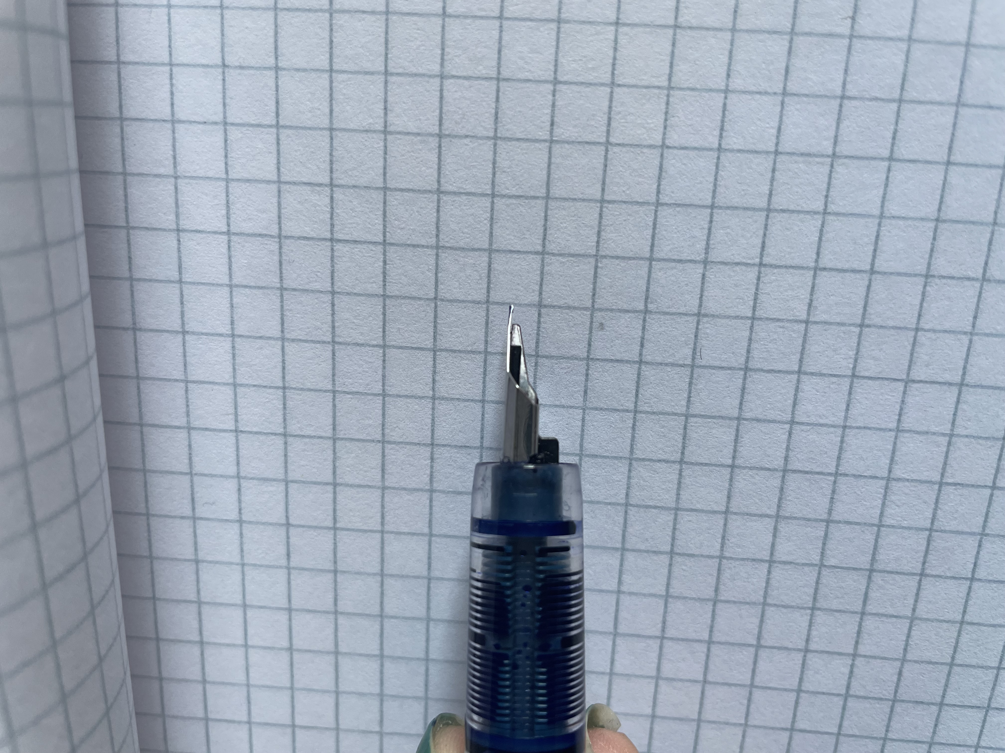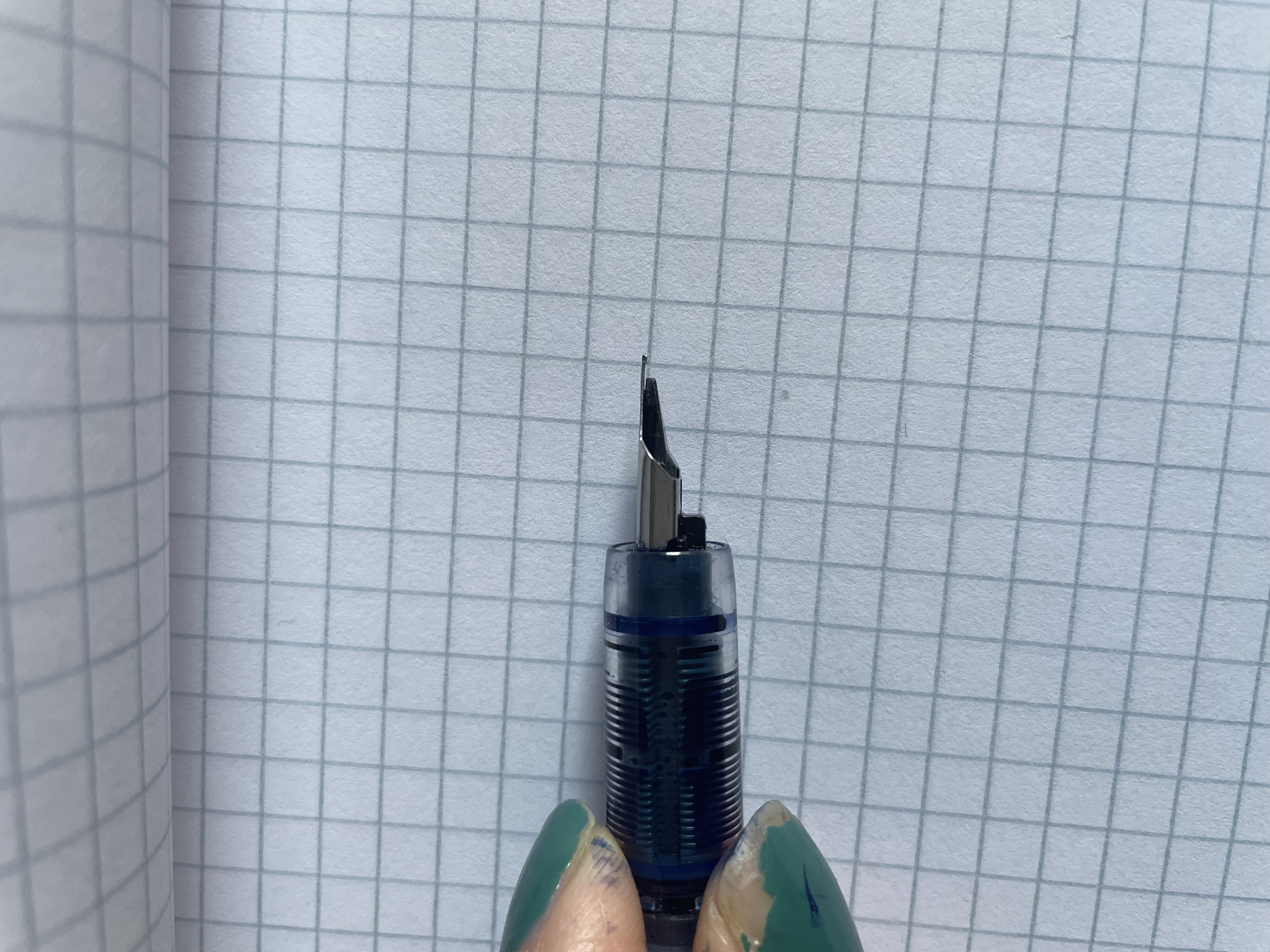 Io intendevo appoggiare il pennino capovolto su una superficie rigida, ovvero con il lato dove si scrive verso il soffitto e il lato dove c'è la scritta "platinum" appoggiato alla superficie rigida.