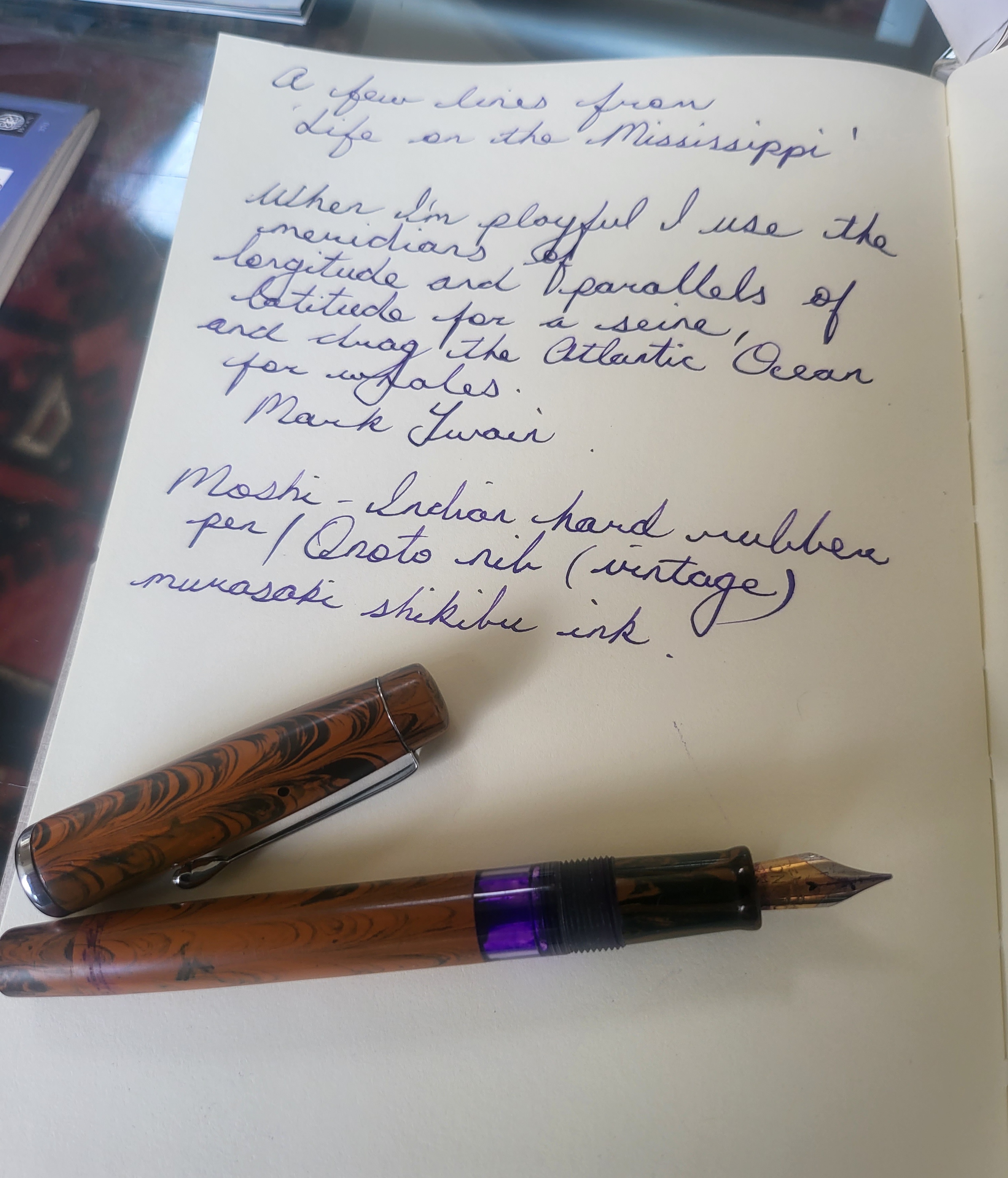 Stilografica Mohi contagocce fabbricata in India (ebanite). Ho sostituito il pennino con un pennino Onoto vintage degli anni Trenta.