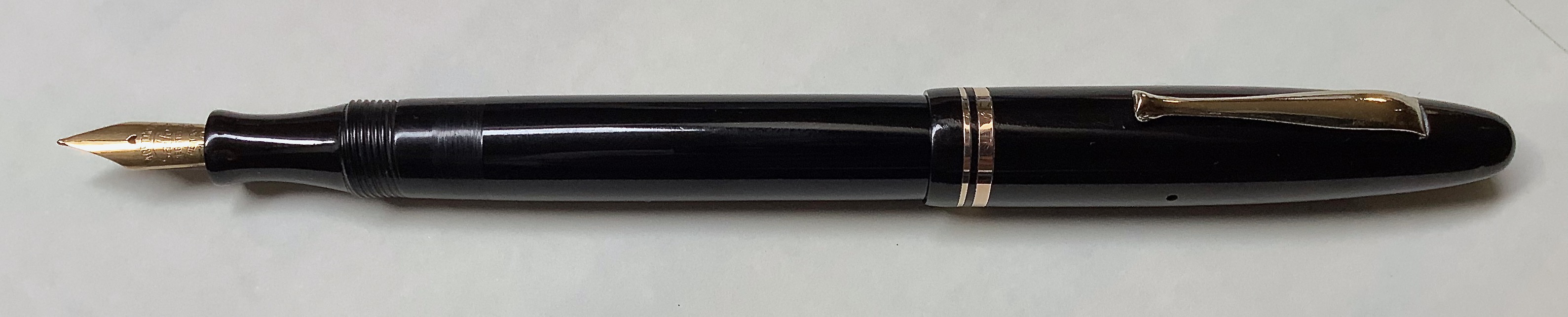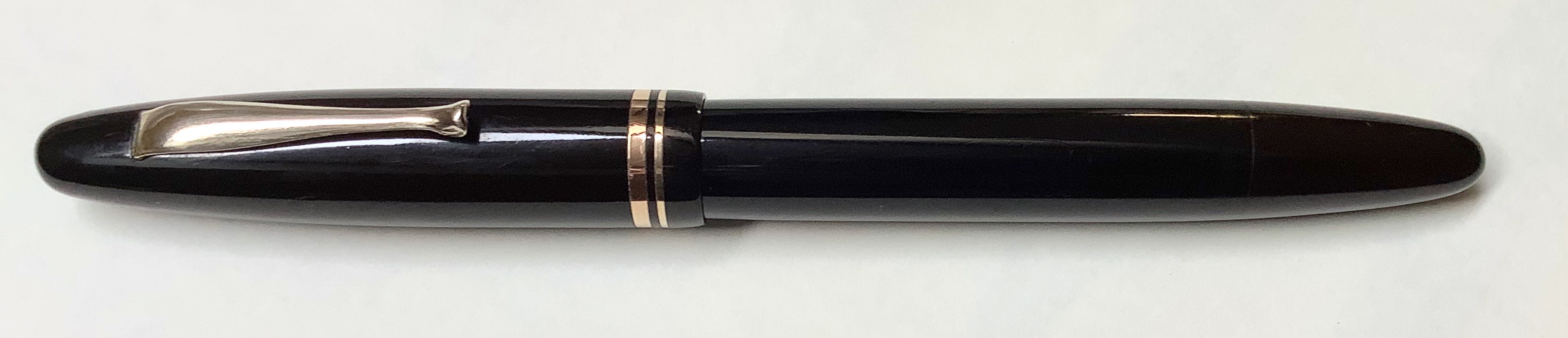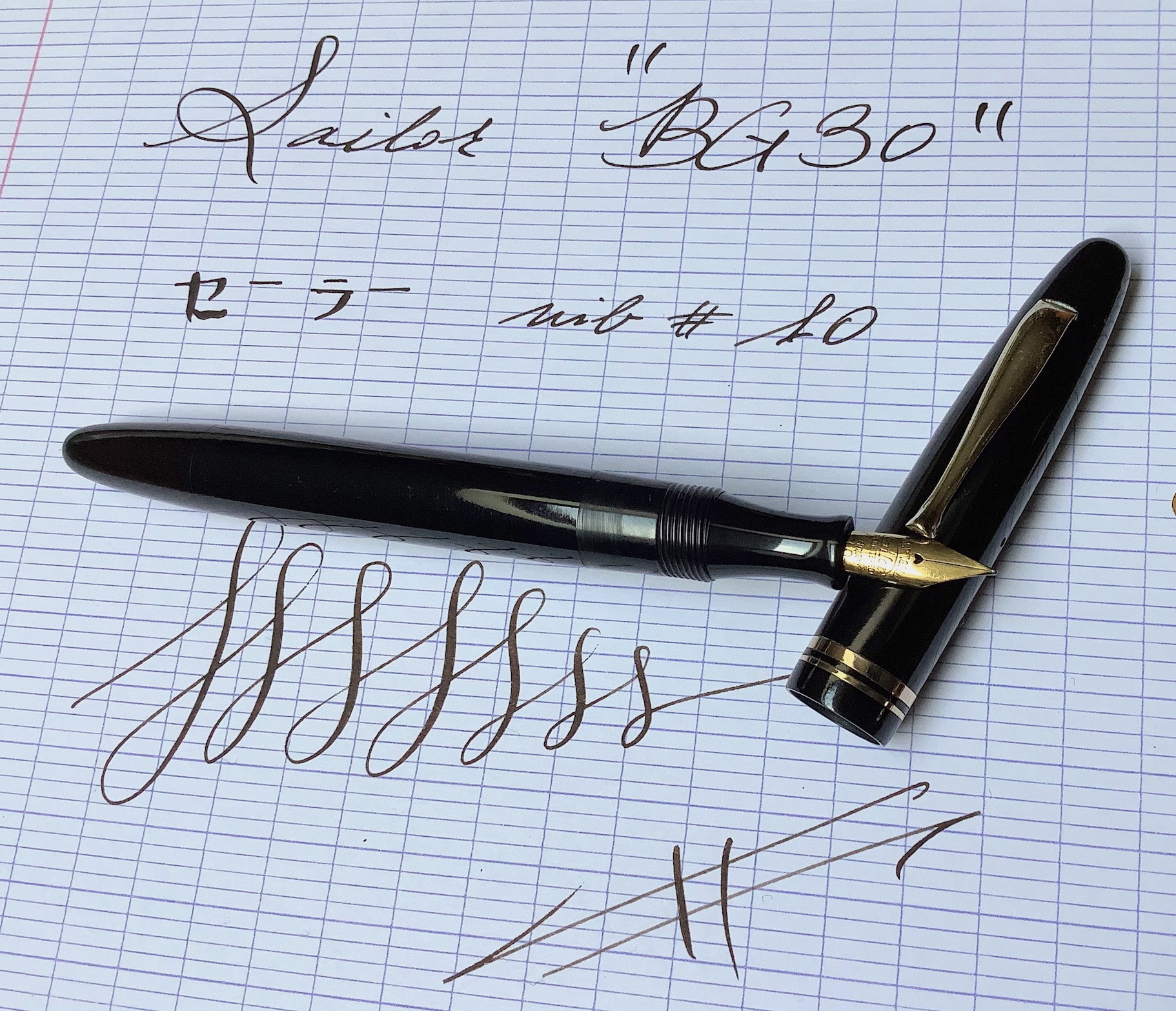 Questa volta tocca alla BG30 , sempre a caricamento a contagocce di sicurezza con asta che blocca l'afflusso di inchiostro al pennino , ebanite laccata e metalleria dorata. Unica nota particolare è l'assenza sul fermaglio della stampigliatura "Sailor" e le ottime condizioni generali in cui si trova la penna.