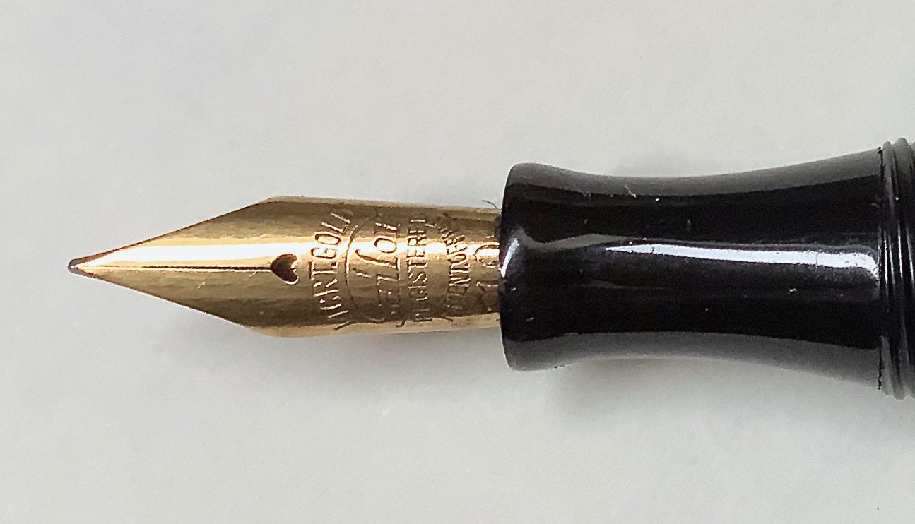 Il pennino è un bel 14 carati di misura #10 , come da catalogo . Flessibile.