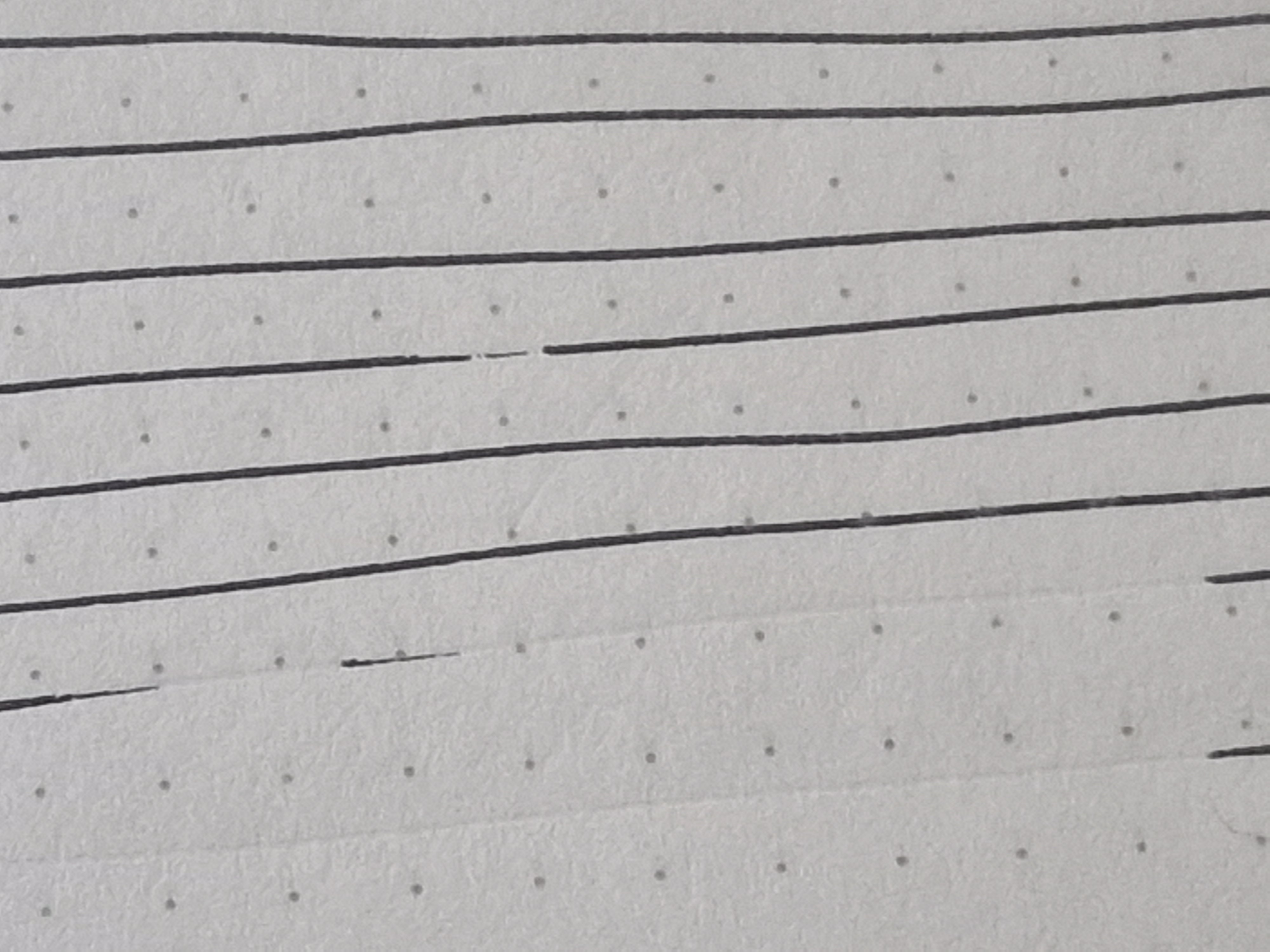 Guarda, mentre scrivo lascia degli spazi vuoti....inoltre gratta si sente sia nella mano che addirittura ad orecchio, la scrittura non è confortevole presenta attrito anche quando scrive senza interruzioni.