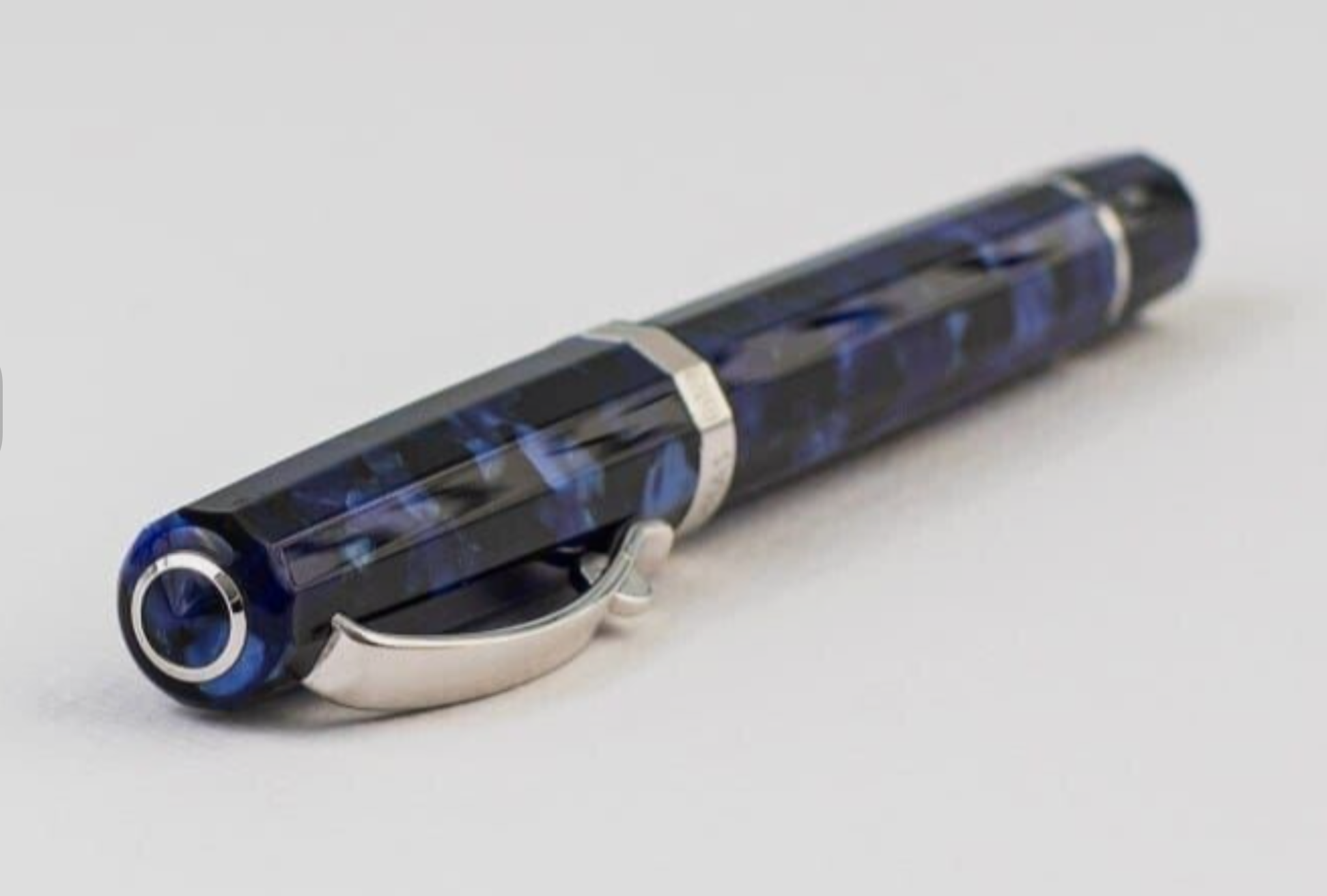 Il corpo ha la bella - o bellissima - forma dodecagonale rastremata della Grand Paragon, e il cappuccio della penna roller termina - come nel modello che la ispira - in una cuspide non pronunciata adornata da un cerchietto metallico prima di raggiungere la sommità. Dalle fotografie che ho visto in rete non ho potuto capire se anche il cappuccio della stilografica abbia l’anello della “O” di OMAS, ma mi pare che no. La clip ad arco del roller può piacere oppure no, ma fa parte del DNA della nuova Paragon, e io la trovo perfettamente riuscita.