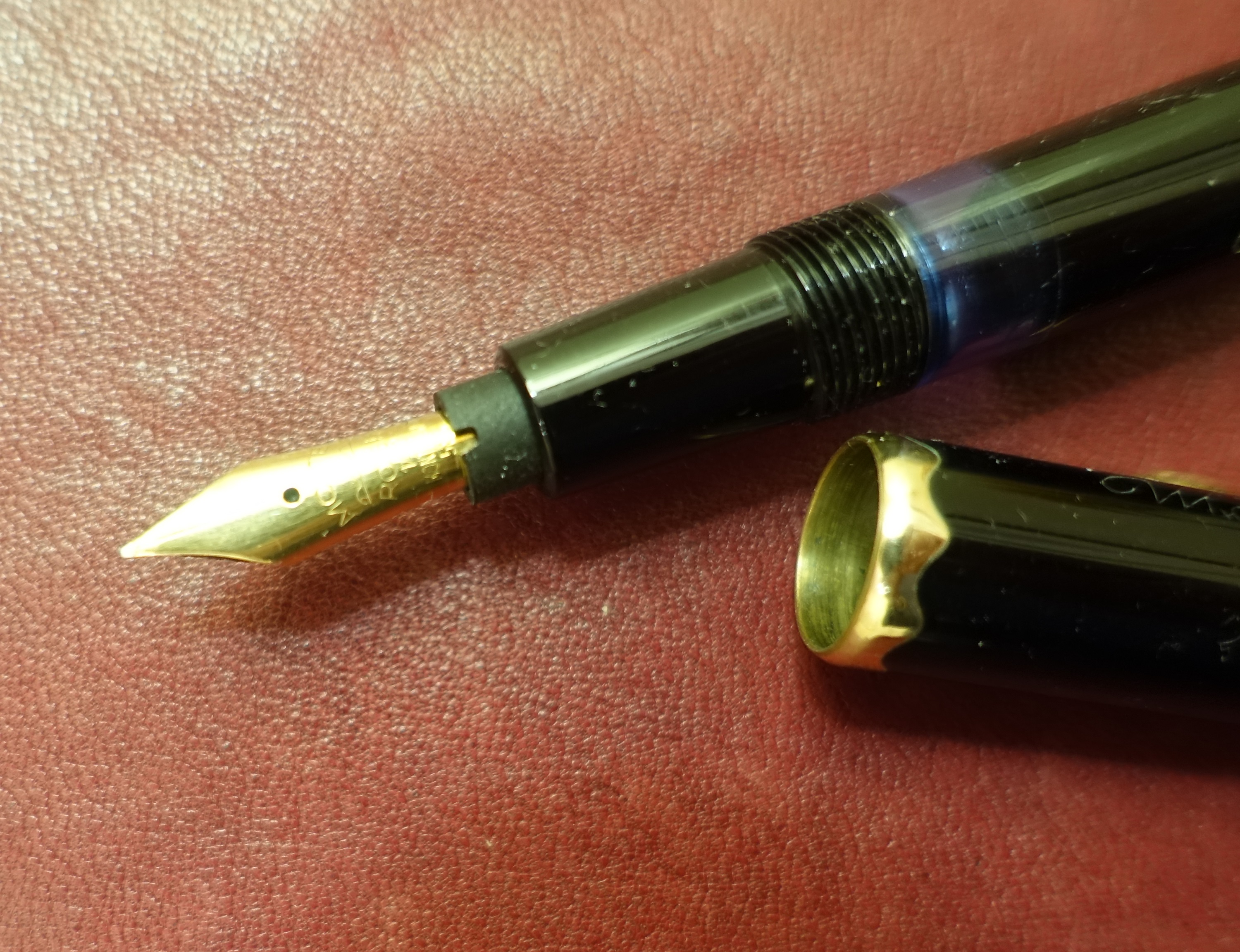 Dopo una doverosa pulizia (semplicemente tramite lunga immersione in acqua come consigliato nella wiki) l'ho caricata con inchiostro Montblanc nero.