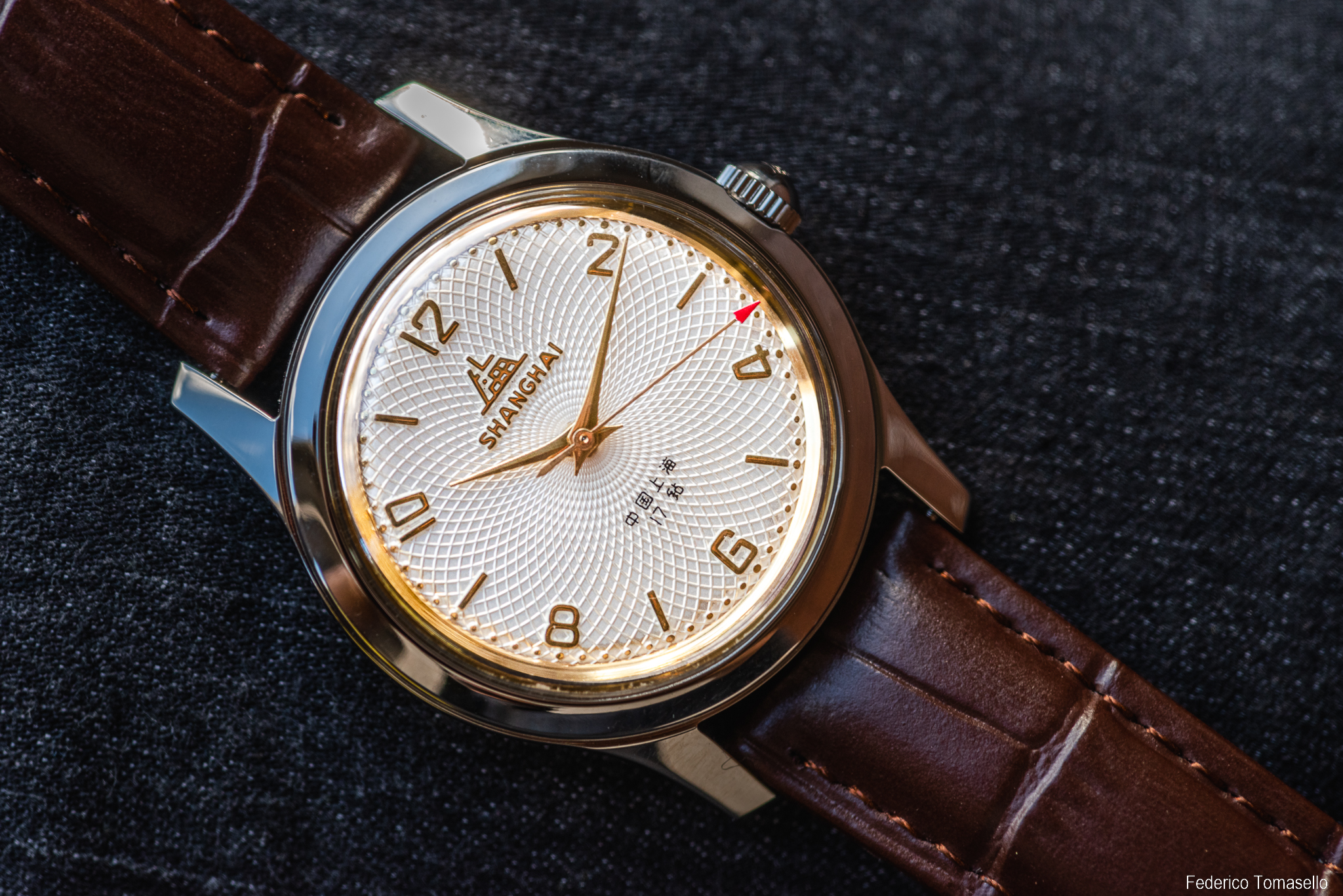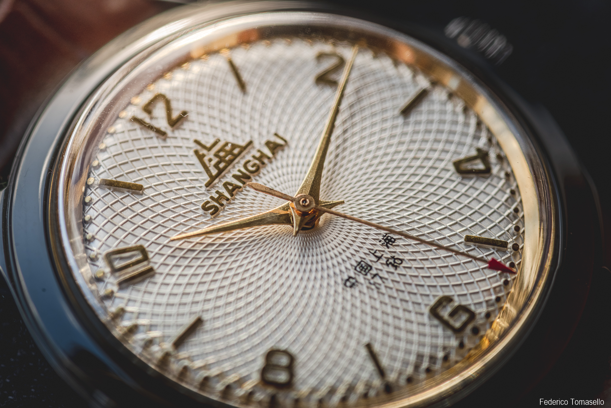 Vi presento lo Shanghai A581, riedizione moderna (filologicamente perfetta), di un vecchio modello della Fabbrica di Orologi di Shanghai, una delle più apprezzate manifatture cinesi, soprattutto per la varietà e qualità della lavorazione dei quadranti (ricordando comunque che si trattava di orologi supereconomici, benché negli ultimi anni si siano spostati nella fascia 100-500€).