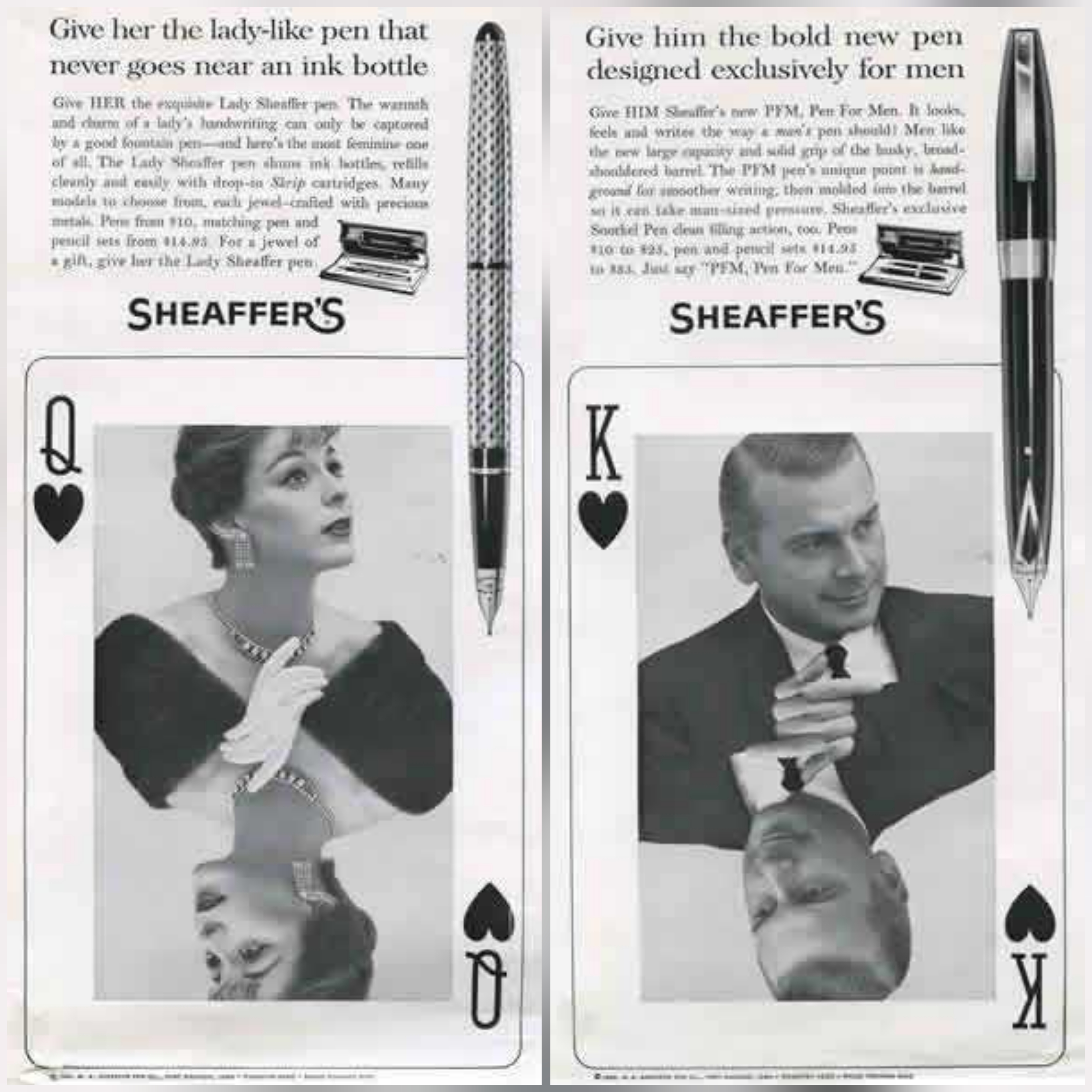 Per non far risentire i signori uomini, nel 1959 è stata introdotta la PFM (pen for men), con l'innovativo inlaid nib e caricamento snorkel: tecnicamente avanzata, ma che non regge il confronto di immagine con la Lady.
