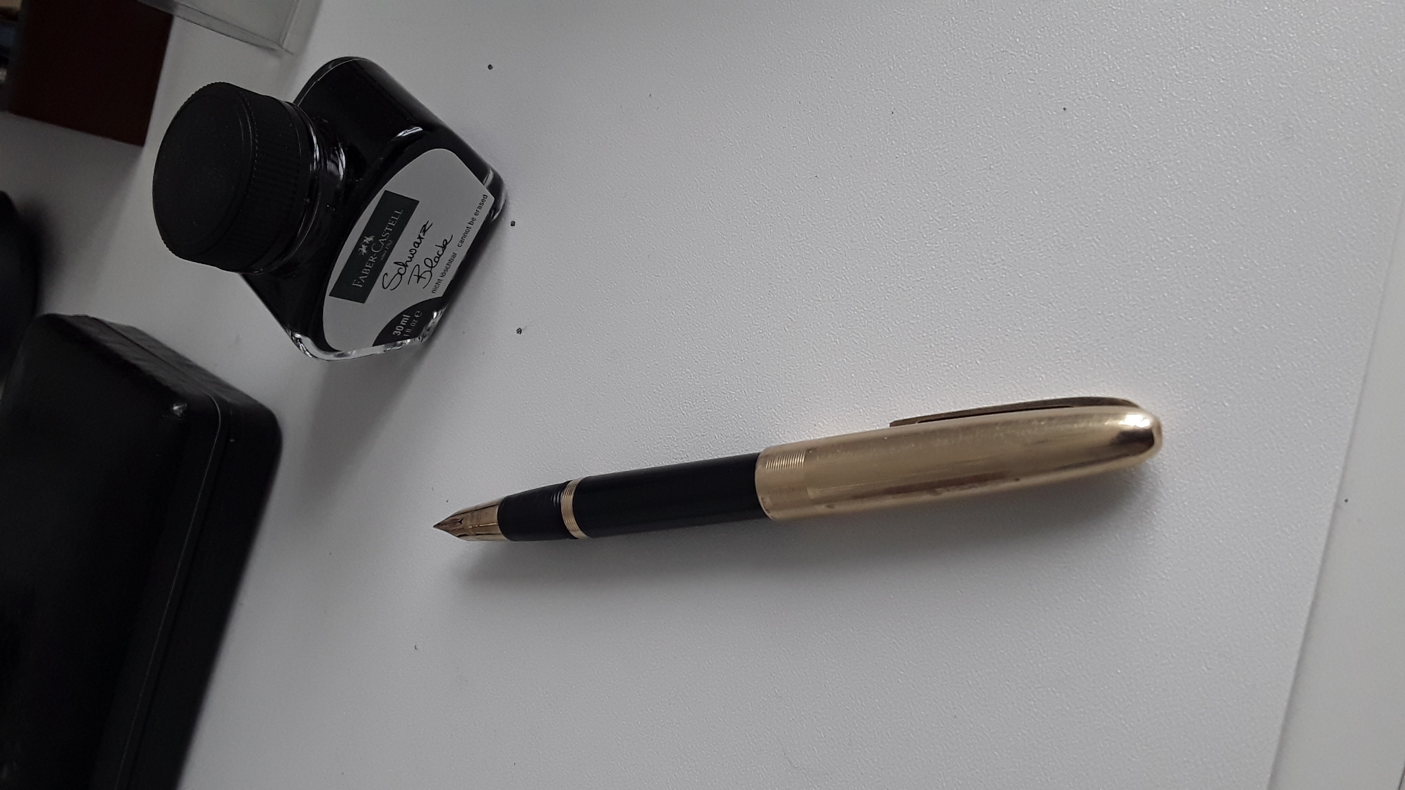 Lo so, qualcuno dira' che certe cose non si fanno ma non ho saputo resistere e ho provato un modo estemporaneo, ed efficiente, per dotare di sacchetto inchiostro una Penco 53 che sotto grumi di sporco interni ed esterni celava un bel cigno nero e oro.