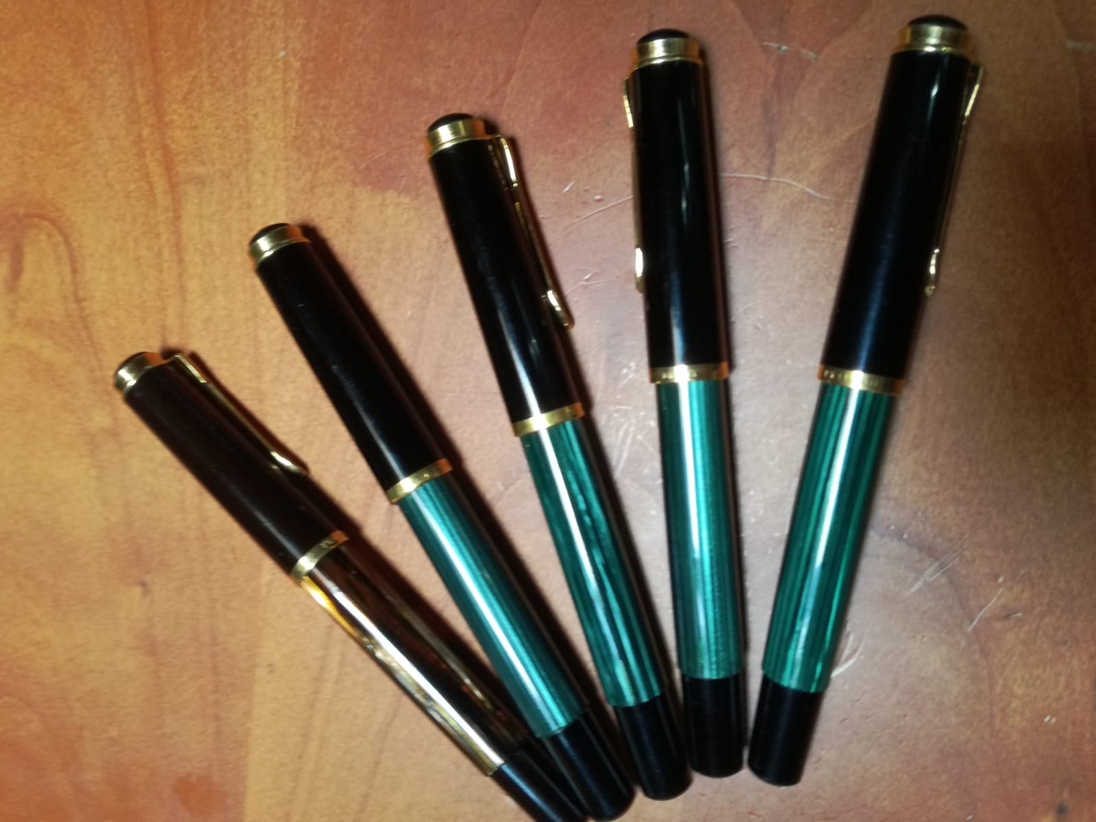 Facendo qualche ricerca per datare la penna, ho scoperto con mia sorpresa che si tratta di una M400 tra le prime mai prodotte -leggo, solo nell’annata 1980- in quanto, oltre alle linee verticali del corpo che non sono solite per colorazione ed equidistanza di una M400 (1982-1997) old style ma uguali per fattezze a quelle presenti nelle più vetuste Pelikan 400, monta un pennino che non si avvita ma che va ad incastro. Suppongo dunque che, qualora la penna sia coeva alla custodia, quest’ultima sia esclusiva di quell’annata, non avendo avuto modo di trovarne altre con questo corredo ma sempre con il piu “semplice” scatolo in cartone e relativo inchiostro., la M600 e M800 sono penne più grandi e magari più piacevoli da impugnare da chi ha mani grandi, ma la M400 pre-1997, come la tua, che si ispira alla 400, è stata pensata con i criteri delle penne vintage. E' vero che è più piccola, ma nasce con l'intenzione di essere usata con il cappuccio calzato (come molte delle penne vintage). Inoltre non ha un pennino "senza carattere" come le Pelikan post 1997 (che sono passate alla punta in iridio rotonda, "kugel") montano ancora i pennini delle 400 che hanno la punta quadrata, e quindi hanno "carattere".