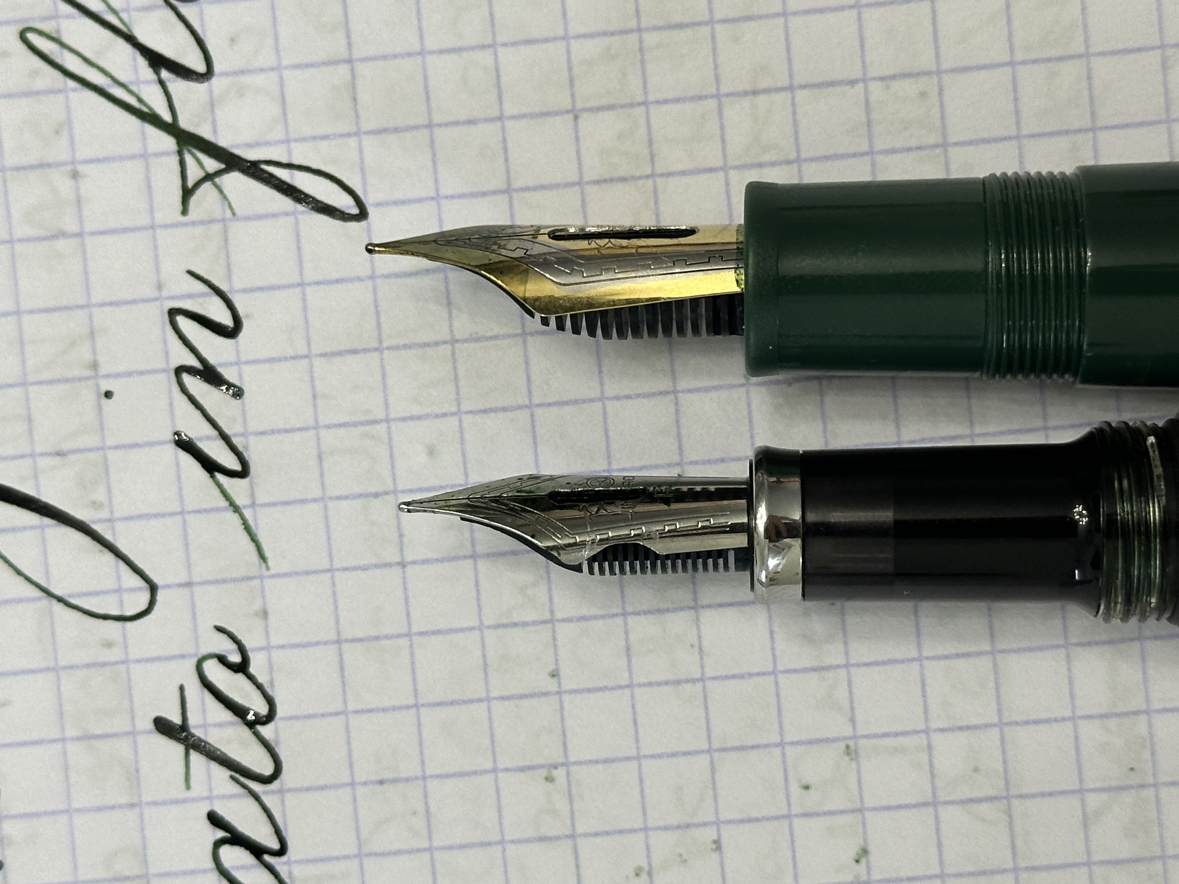 Effettivamente la prova non può essere un confronto diretto perché il pennino più grande è diverso e non paragonabile (perché più lungo, perché si tiene la penna in modo diverso, ecc.)