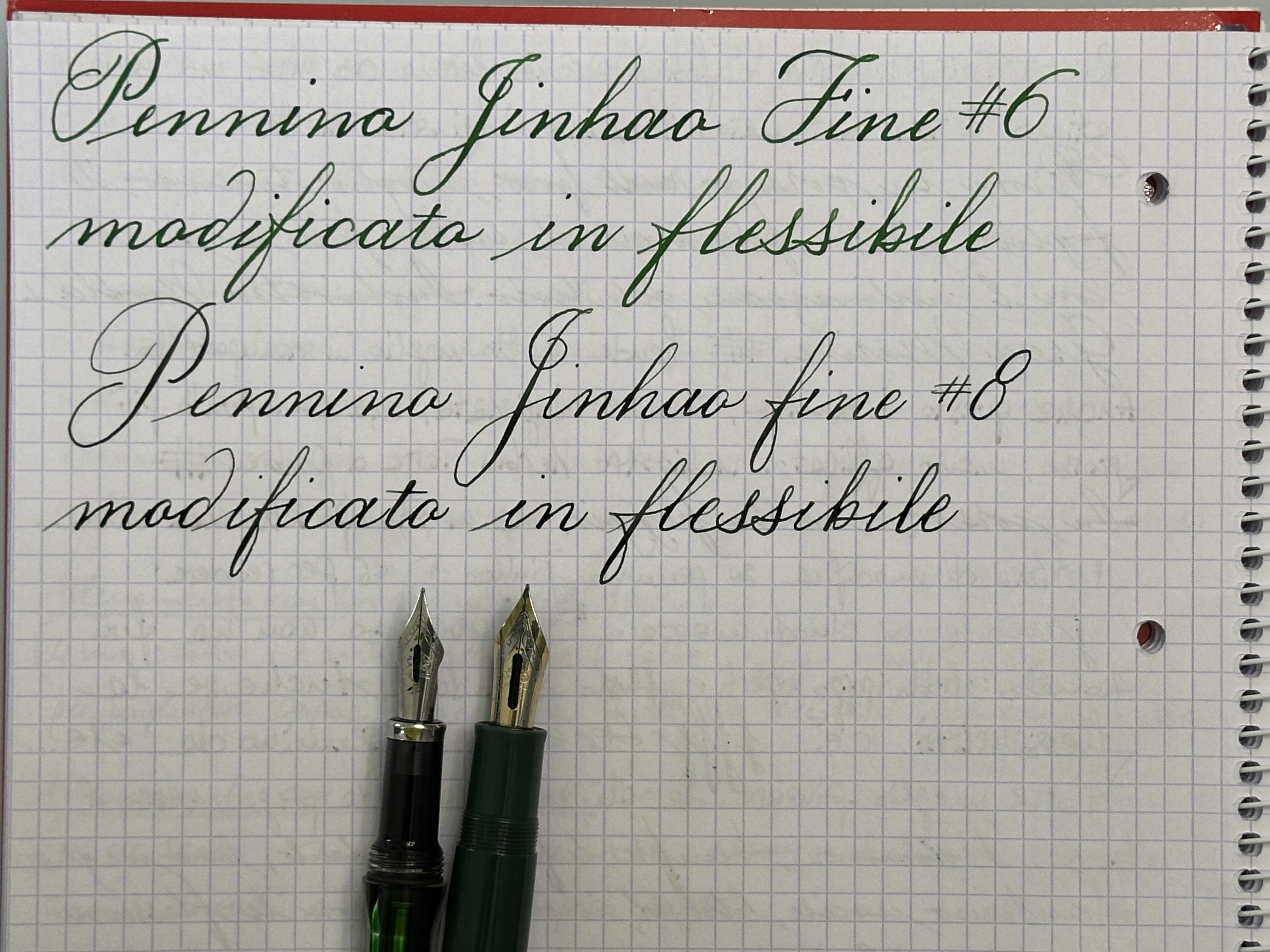 In entrambi i casi, soprattutto sul #8, c’è da lavorare ancora, ma il risultato è già decisamente apprezzabile. Sicuramente migliore di qualsiasi pennino commercializzato come “Flex” nell’ultimo decennio