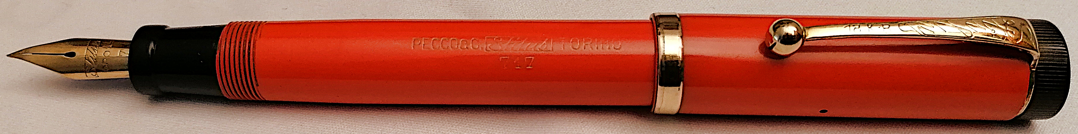 Mi ha venduto una Stilus 717 che mi è subito piaciuta molto anche per il fatto che era originale in tutto (compreso un bel pennino d'oro) e che richiamava in modo evidente i modelli Duofold degli anni '30 , Parker un esempio per tutti, compreso il colore coral red.