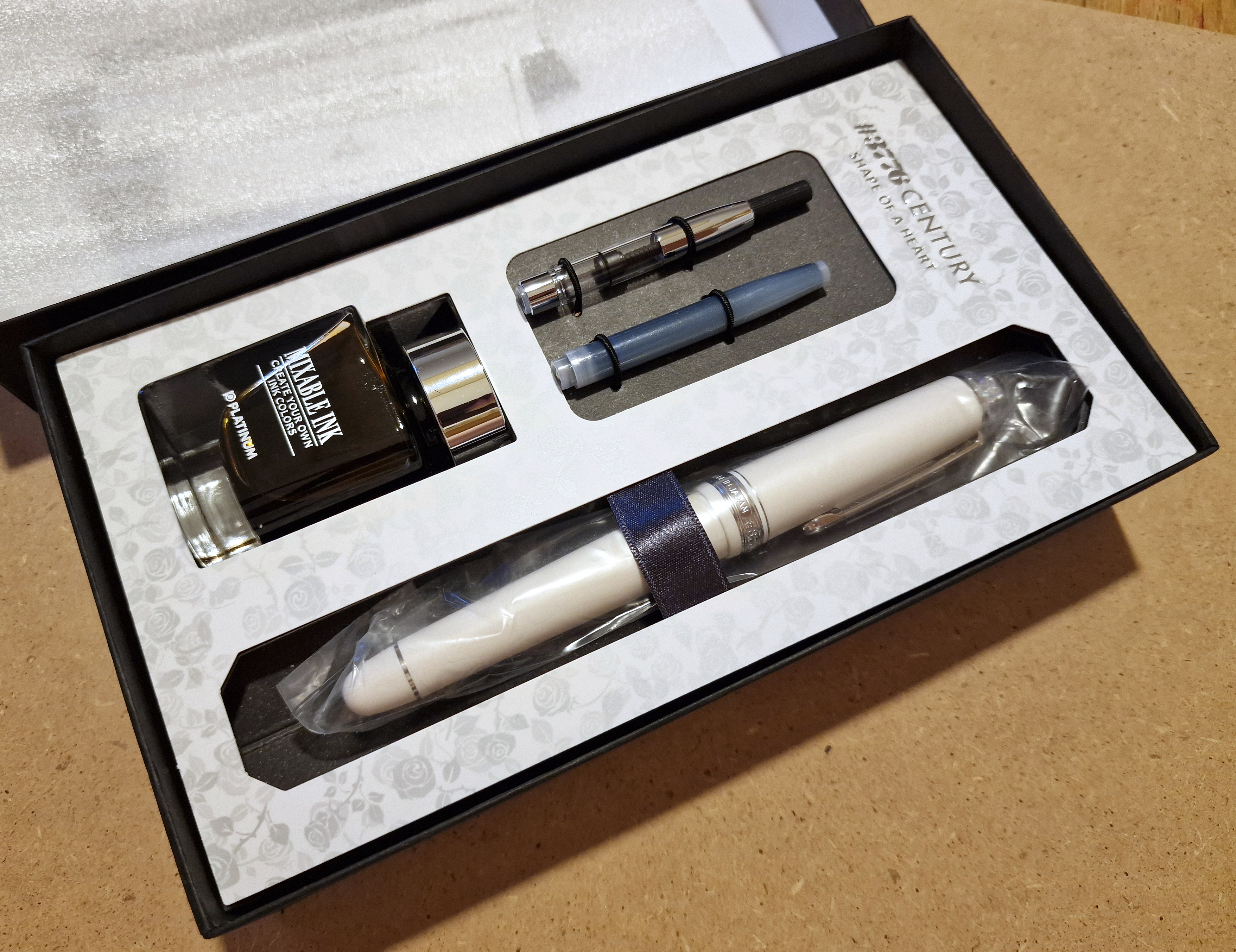 La confezione contiene la penna, un converter, una cartuccia di inchiostro Platinum blue-black, un flacone di inchiostro Platinum della serie Mixable, differente a seconda dell'edizione che si acquista. La Ivoire è corredata dalla colorazione Earth, un marrone caldo aranciato.