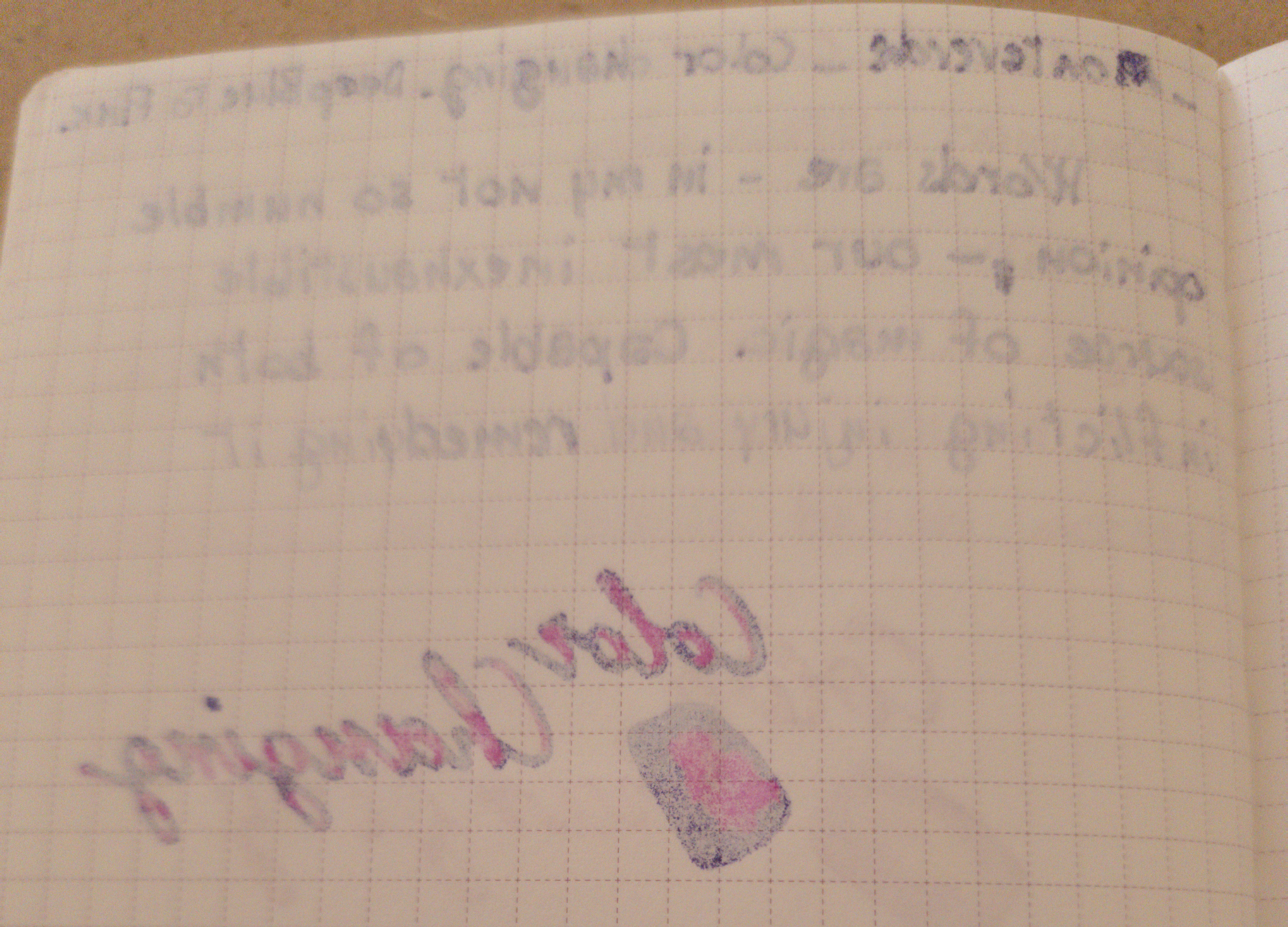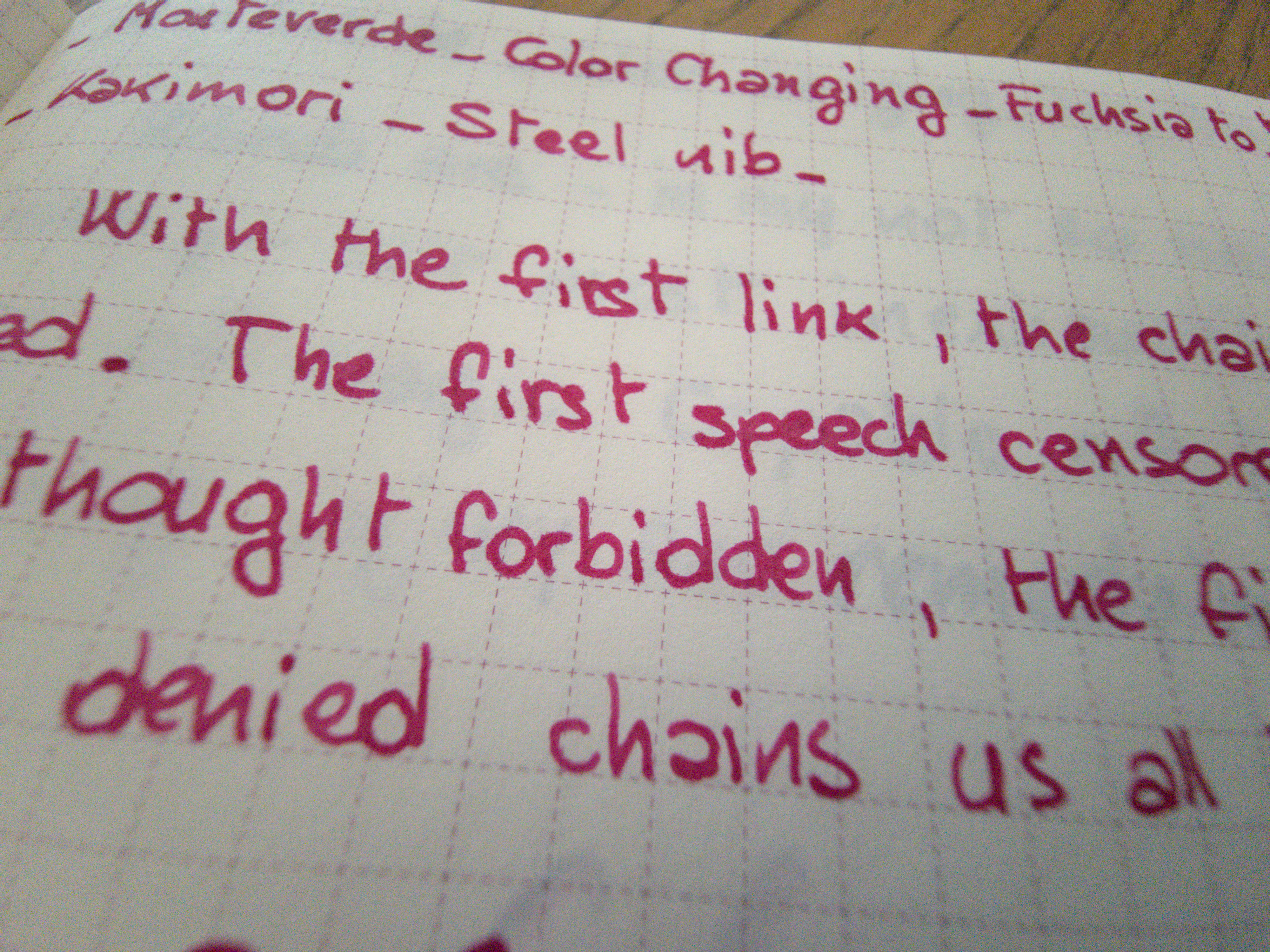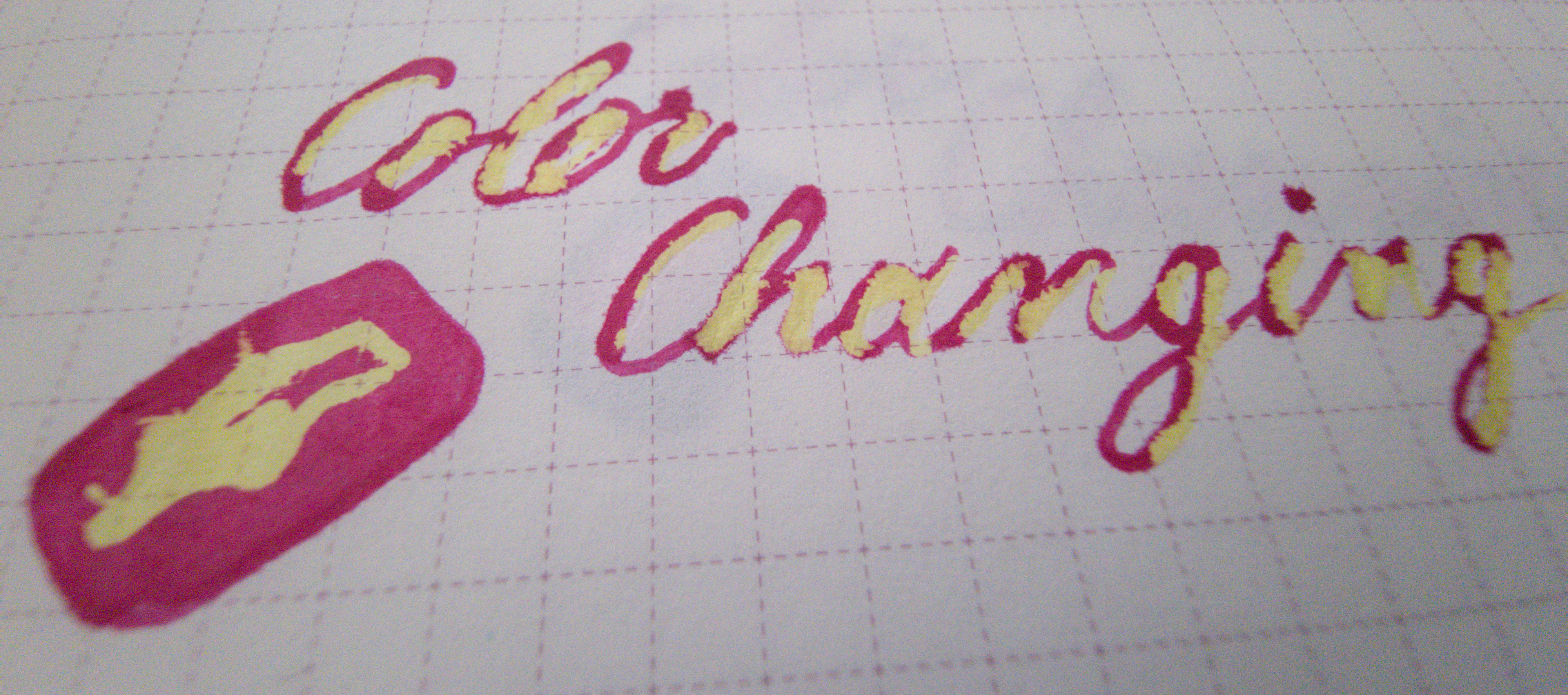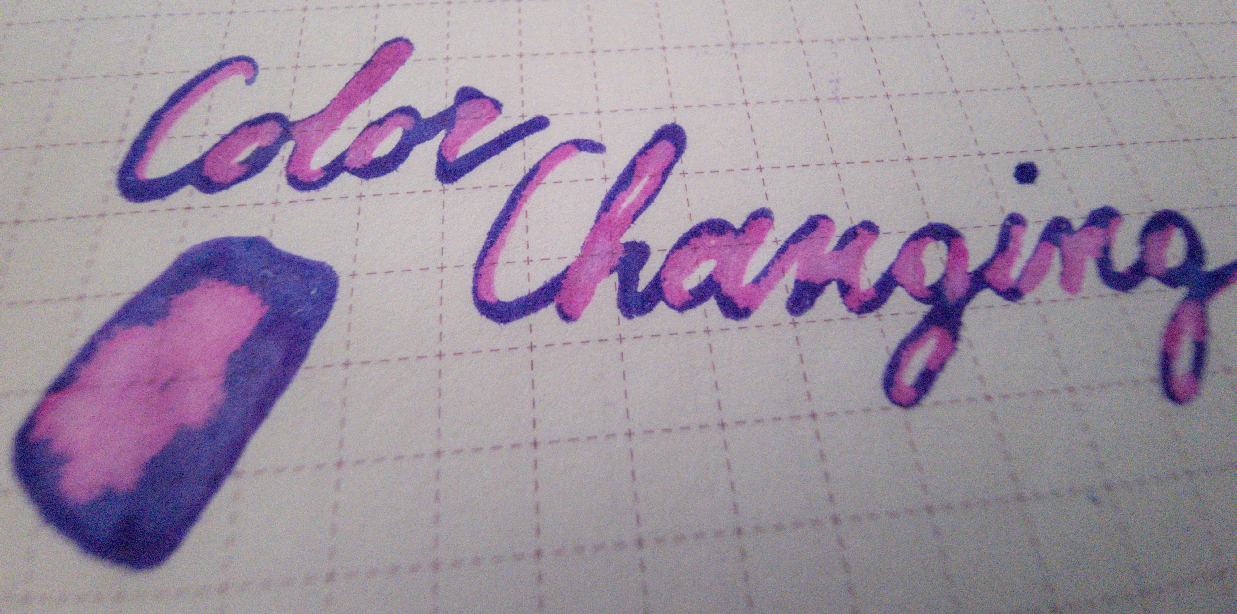 Da solo è un colore, a mio parere, molto nella media e tendente all'insignificante. Un po' un colore da pennarello (che è poi quello che mi ricordano questi inchiostri che cambiano colore).