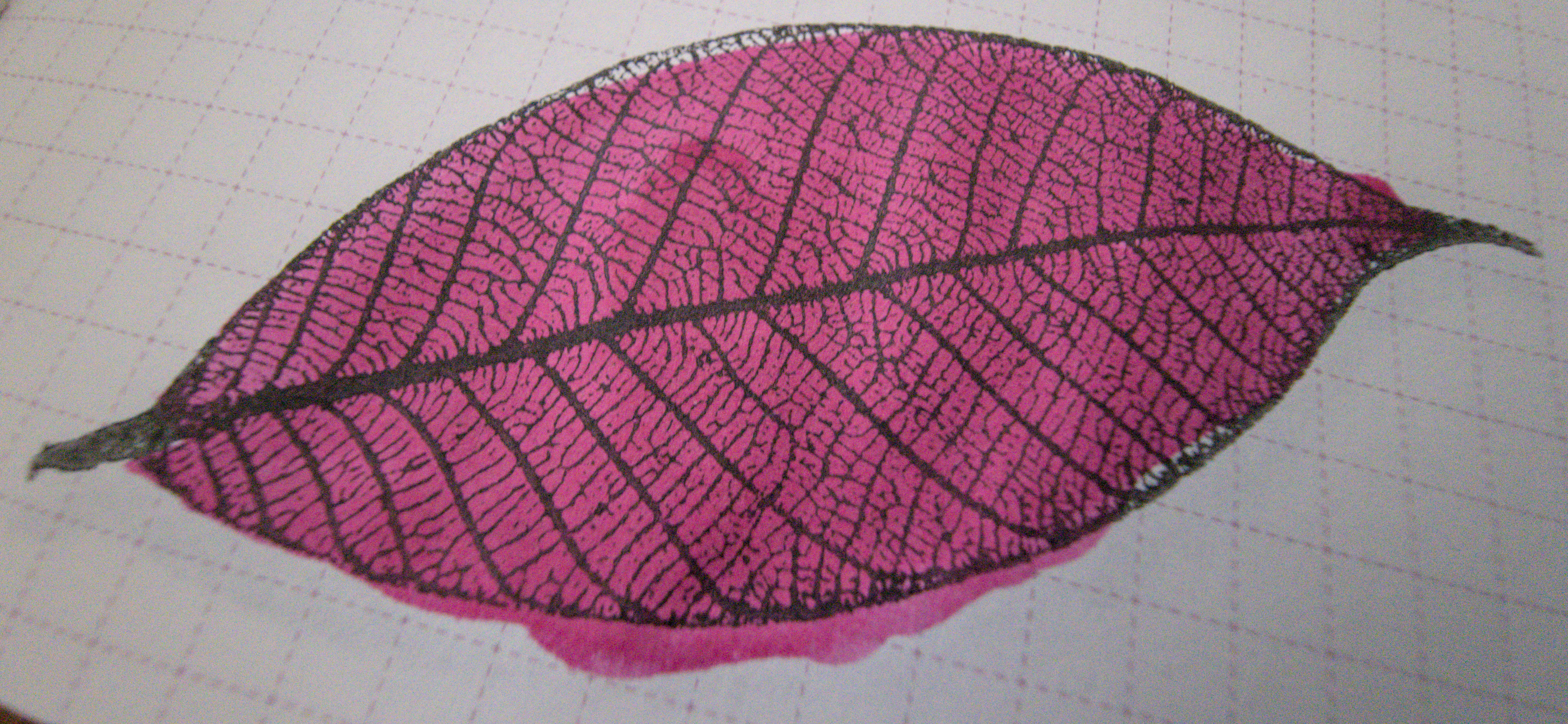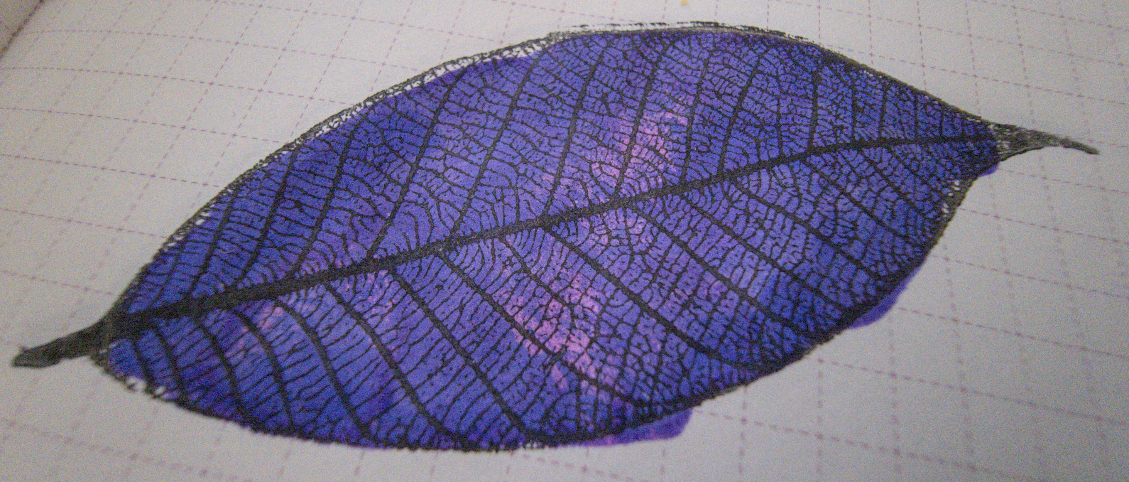 Altro problema relativo al colore blue: lo swatch della foglia non è stato toccato con il liquido per cambiare il colore ma l'inchiostro è sensibilissimo al ph della carta e cambia da solo verso il rosa.