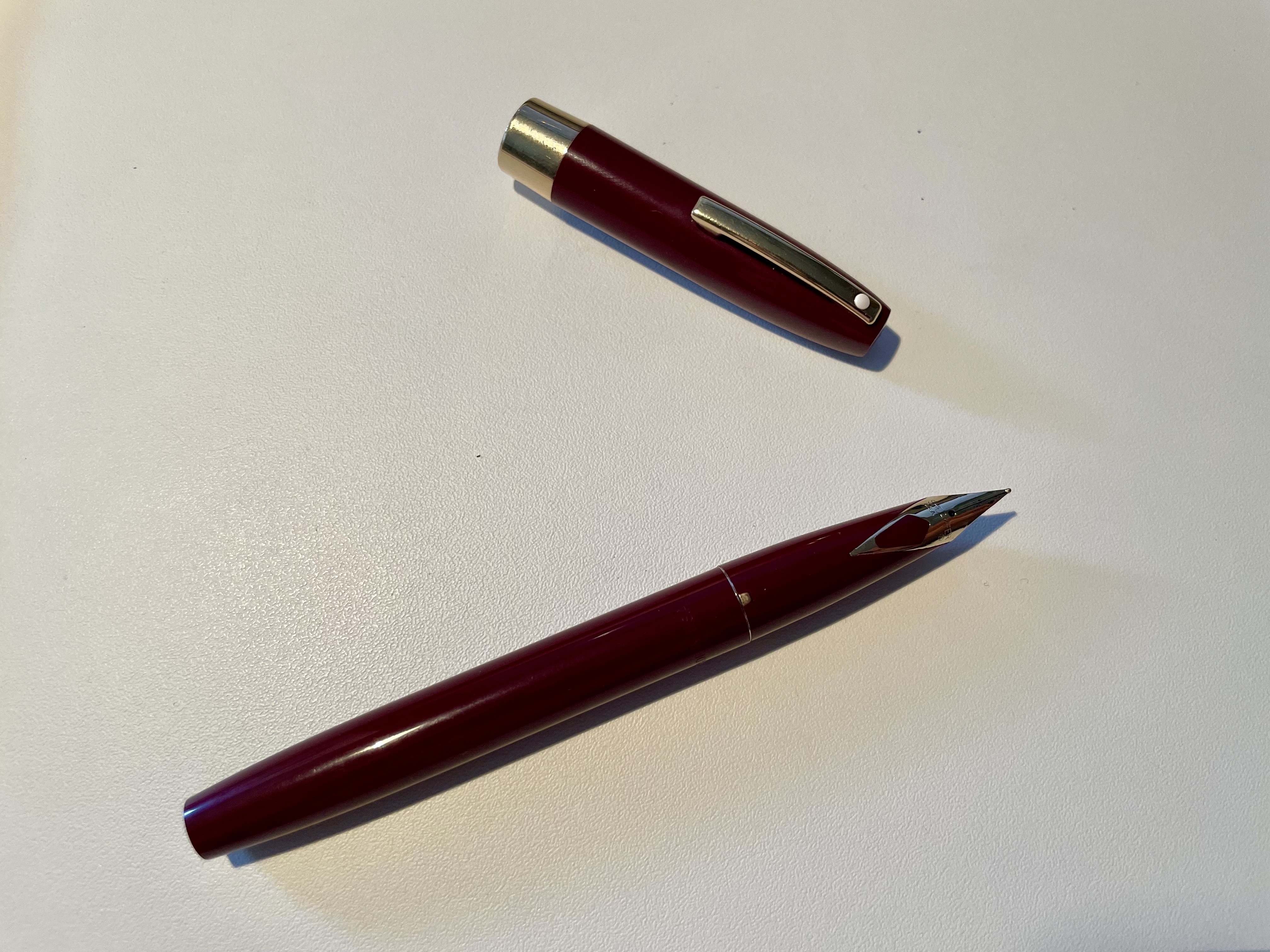 Non so come mai Sheaffer abbia fatto uscire dalla fabbrica delle penne con un problema così evidente, ma io un'idea me la sono fatta. Magari sbaglio, perciò sarebbe utile avere un parere di qualcuno più esperto. Non può essere che la celluloide (o comunque il materiale plastico del corpo) si sia lievemente deformata o ristretta negli anni e questo abbia influito anche sulla distanza tra i rebbi del pennino, data la caratteristica totalmente "seamless" dello stesso (ovvero totalmente integrato nel corpo)?