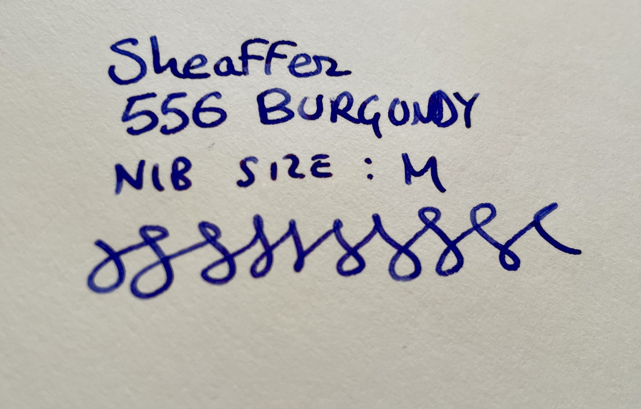Premetto che la penna è arrivata nuova, mai inchiostrata, con scatola e libretto originali e un bollino sul corpo che indicava il modello 556 e la dimensione del pennino (M). Non avendo altre Sheaffer nella mia collezione (se non un vecchissimo e, purtroppo rotto, modello con pennino 14K e caricamento a levetta acquistato su eBay una ventina d'anni fa), per venticinque euro non me la sono fatta scappare.