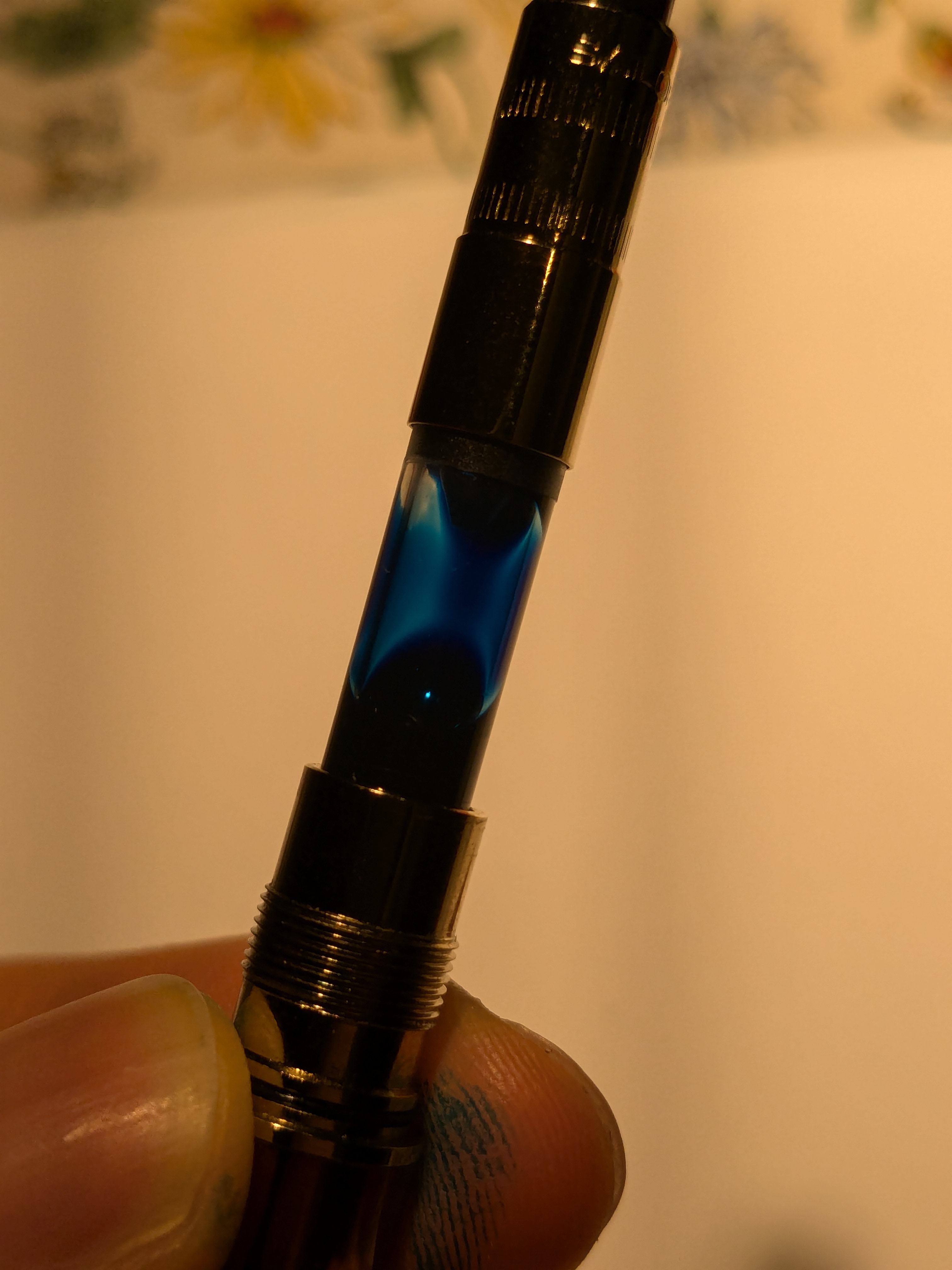 Rimontato il tutto, carico con il classico Pelikan 4001, mi fa lo stesso difetto, finché spingo l'inchiostro a forza girando il converter scrive benissimo, ma quando si esaurisce l'eccesso di inchiostro nell'alimentatore basta, non scrive più.