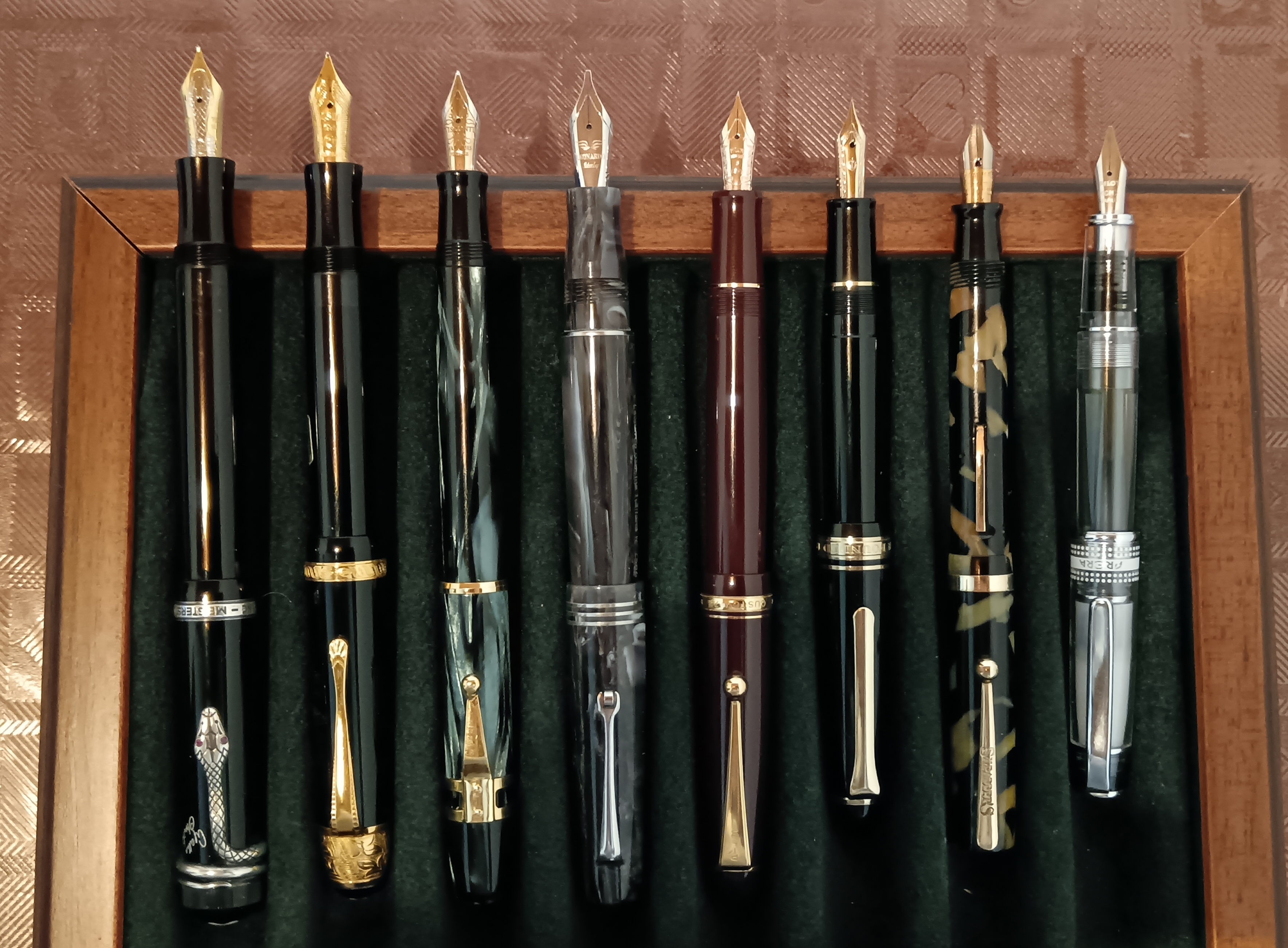 Modello60 ha scritto: lunedì 26 agosto 2024, 4:28 Ho quattro penne piene di inchiostro. La forum Duchess è riempita con inchiostro Parker Penman Ruby e rimane la mia penna preferita. La MBH è riempita di yama-budo, un colore che aiuta a illuminare le brevi giornate invernali. La Omas Gentlemen è riempita con Parker Quink nero e infine la Marlen 'Forme' del 2003 è riempita con un altro iroshizuku, il chiku-rin.