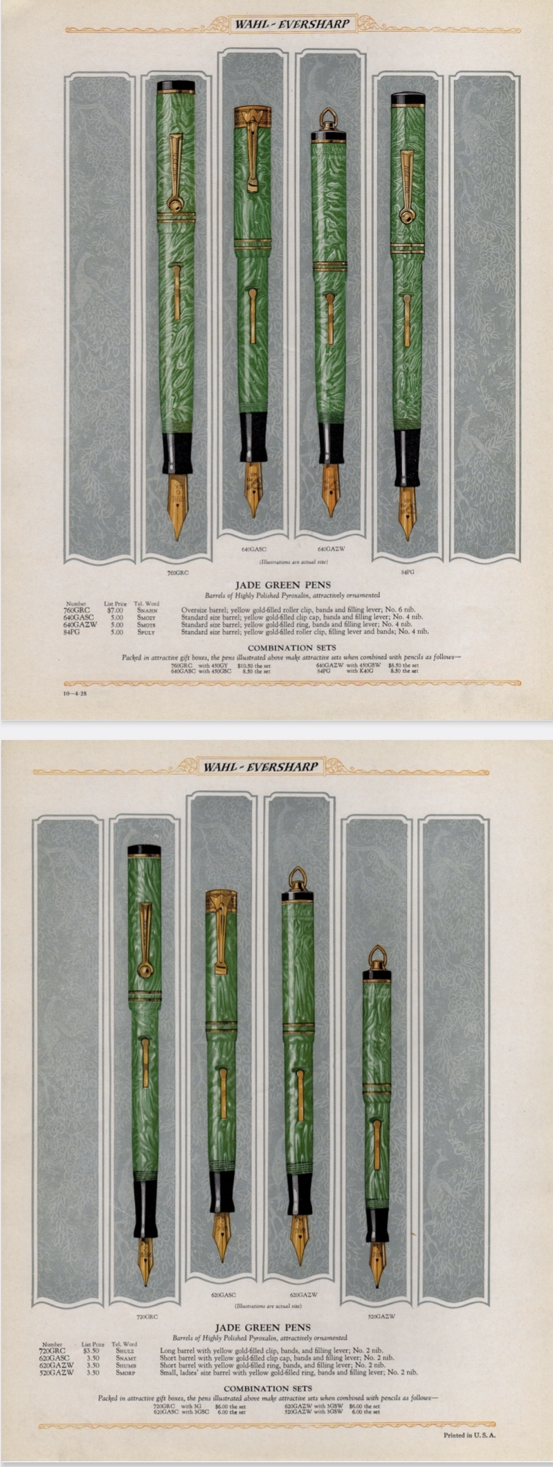 Se non vado errato , sul finire del 1928 le incisioni sull penne cambiarono da WAHL PEN a WHAL EVERSHARP (o comunque venne introdotta anche la dicitura EVERSHARP)