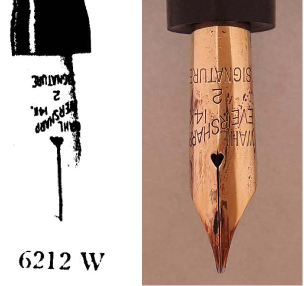 Di conseguenza , e facendo sempre riferimento alle immagini che è possibile vedere sul catalogo del 1929, le incisioni sul pennino alla parola WAHL si aggiunse anche EVERSHARP scritta in obliquo (rimane la numerazione del pennino, l’indicazione dei carati, ed eventualmente la stampigliatura SIGNATURE)