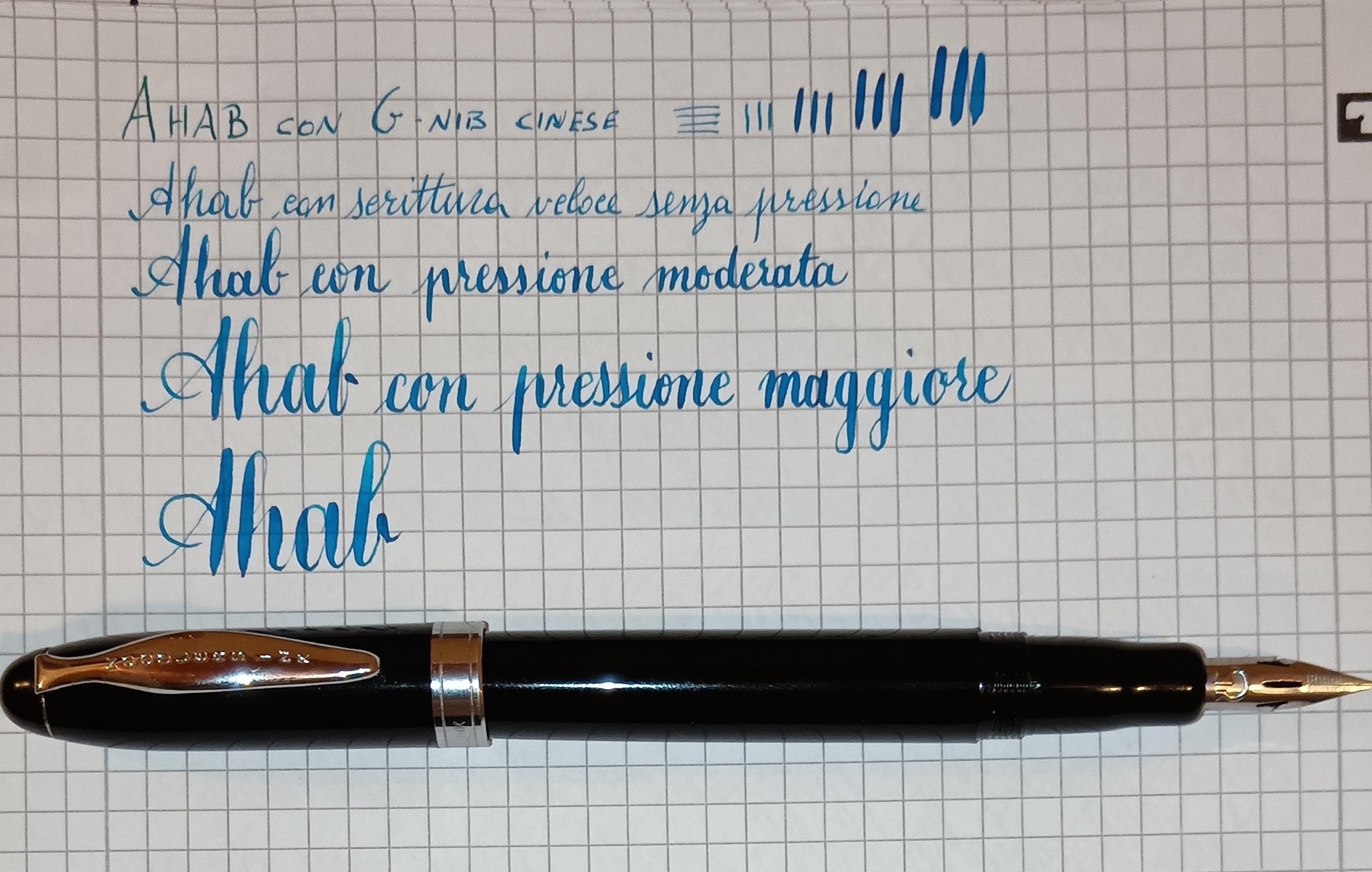 Secondo me però, come anticipavo all'inizio, non ti serve un flessibile. Io andrei su un pennino Fude, uno di quelli cioè con la punta piegata all'insù con i quali puoi avere il tratto fine o il tratto spesso. La Sailor con pennino fude costa una trentina di euro, secondo me è da avere, io non ho la Sailor Fude ma ho invece un paio di cloni cinesi, ancora più economici :D