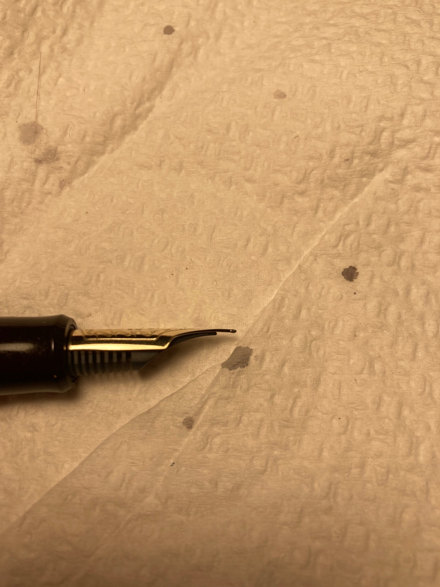 Prima o poi la farò vedere da un bravo tecnico magari in grado di personalizzare il pennino. Il fatto è che scrive così bene che è un peccato doverla impugnare come vuole lei, il pennino è talmente vicino alla perfezione (per me) da rendere questo problema davvero frustrante.