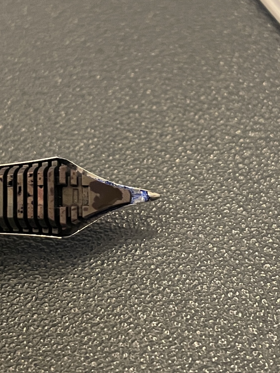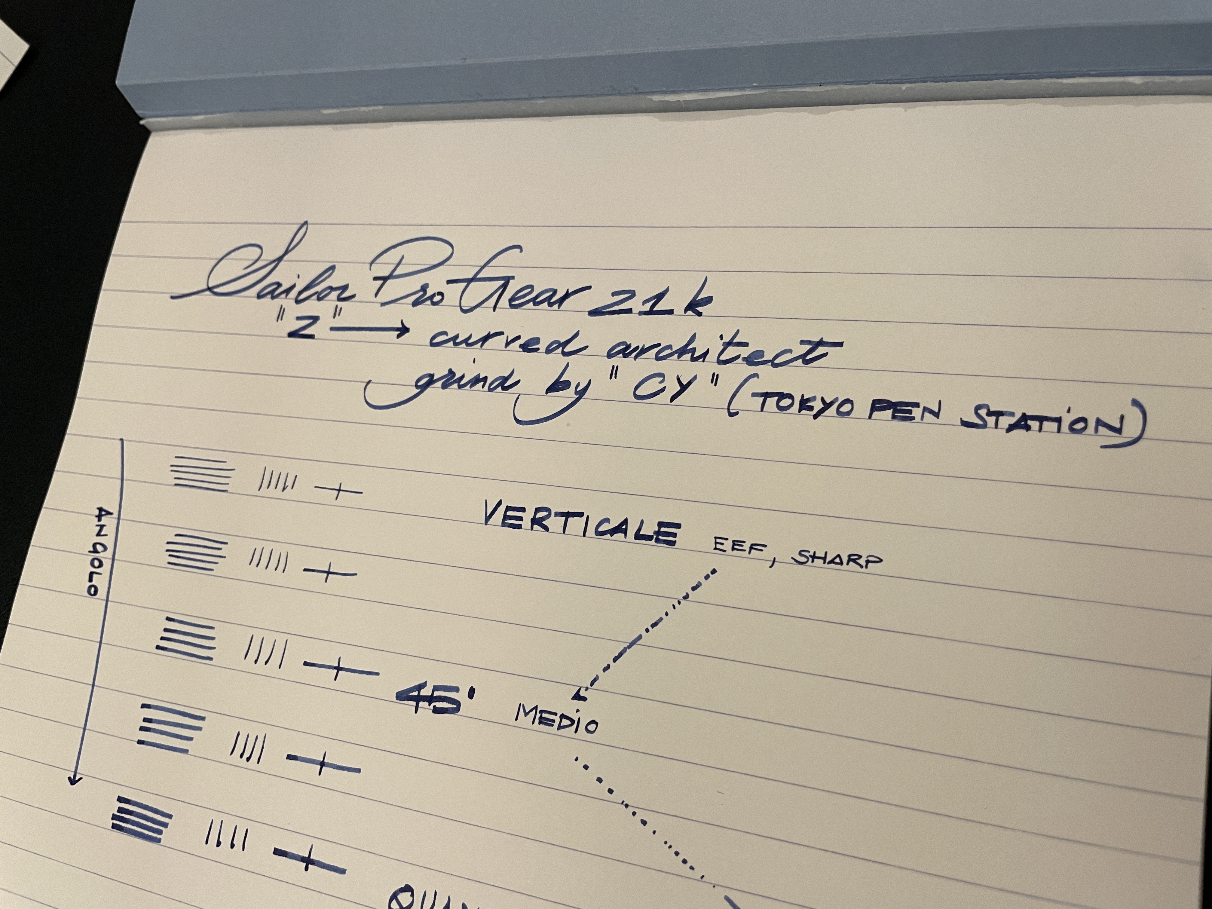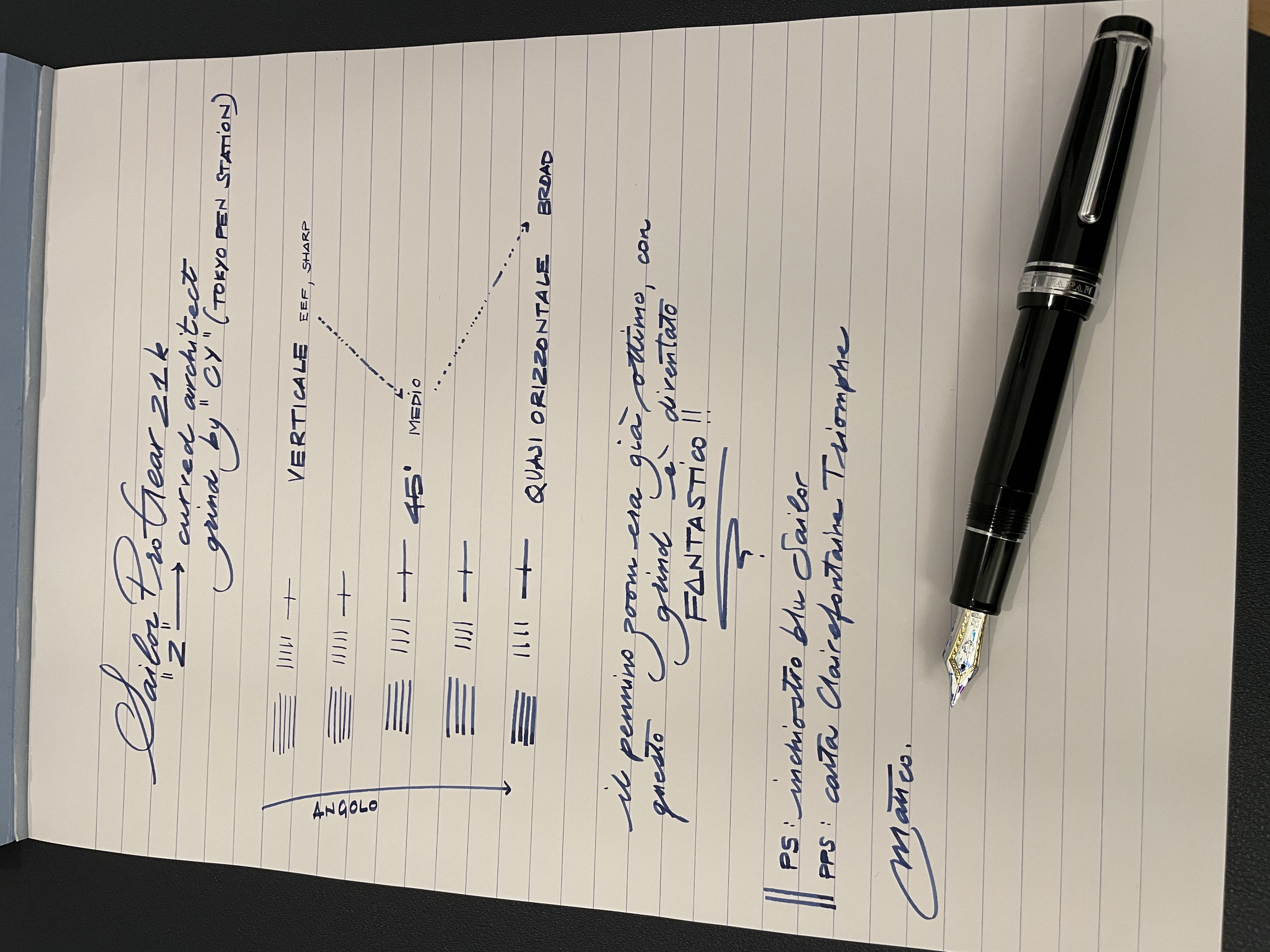 Si vede che l’architect è piatto con spigoli abbastanza vivi e deve essere usato sempre con lo stesso angolo, altrimenti scrive sullo spigolo con un tratto praticamente EF. È un problema se l’angolo del pennino non è quello che usi tu.