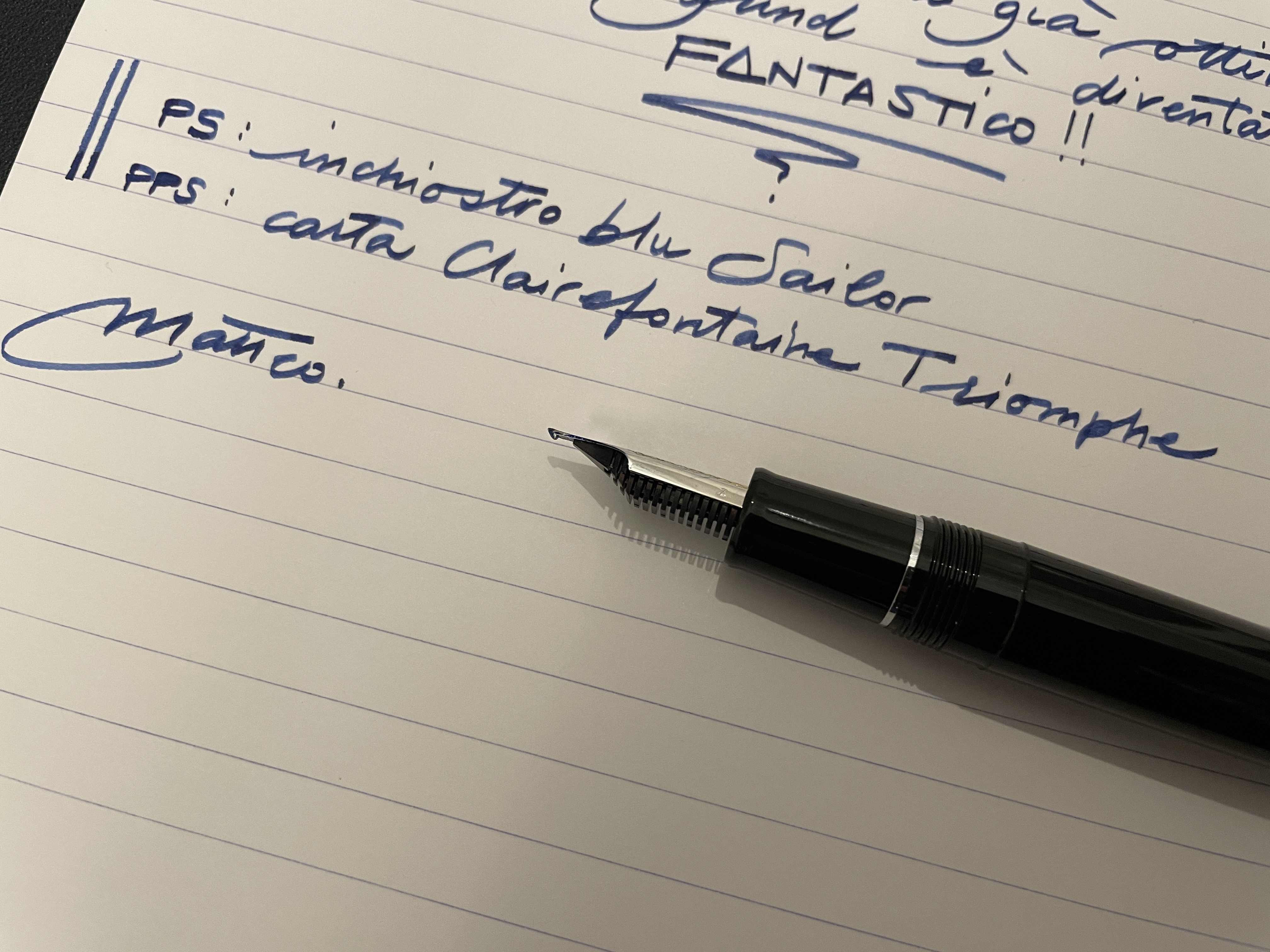 Roland ha scritto: ↑sabato 19 ottobre 2024, 19:46 Chi scrive variando l'angolo di scrittura mentre scrive?L'avevo provato qualche tempo addietro in una boutique montblanc il loro pennino curved calligraphy che dovrebbe essere la stessa cosa del pennino zoom. Varia lo spessore del tratto in funzione dell'inclinazione della penna. Mi aveva lasciato indifferente perché io scrivo mantenendo una inclinazione costante.