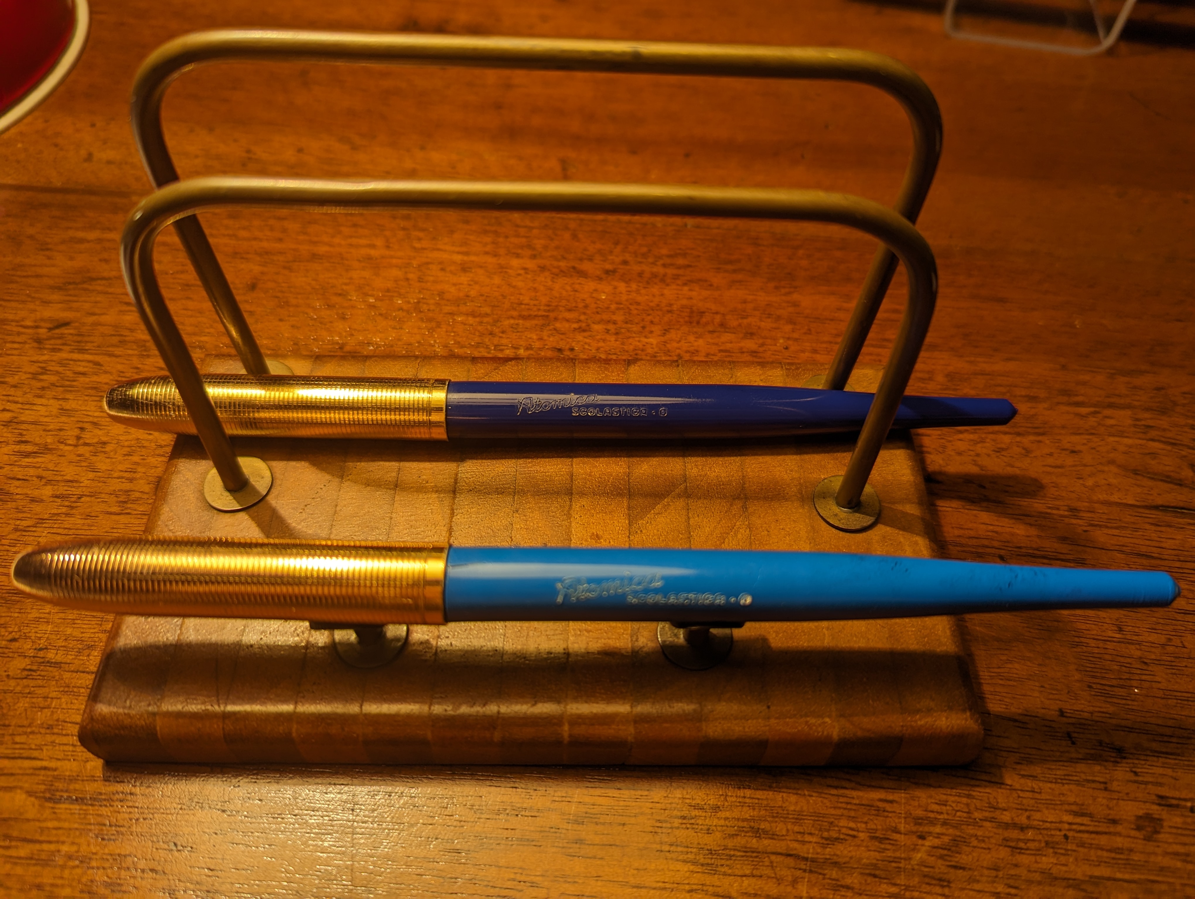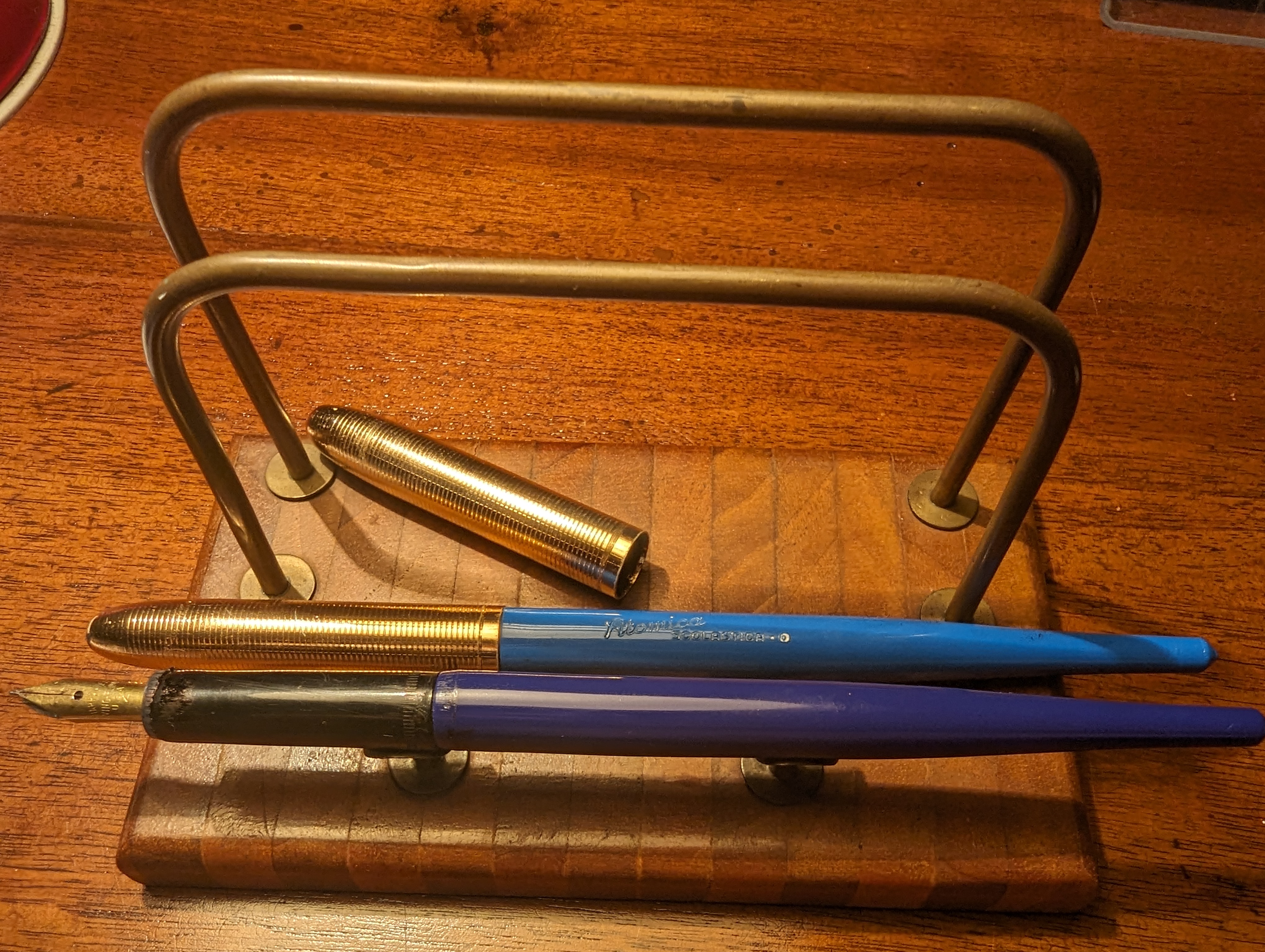 Ne venne offerta anche una versione stiloforo, con due penne ed una buona riserva di cartucce. L’esemplare che vedete appartiene alla seconda serie ed ha il vantaggio d’essere completo ed originale, anche se non in condizioni perfette.