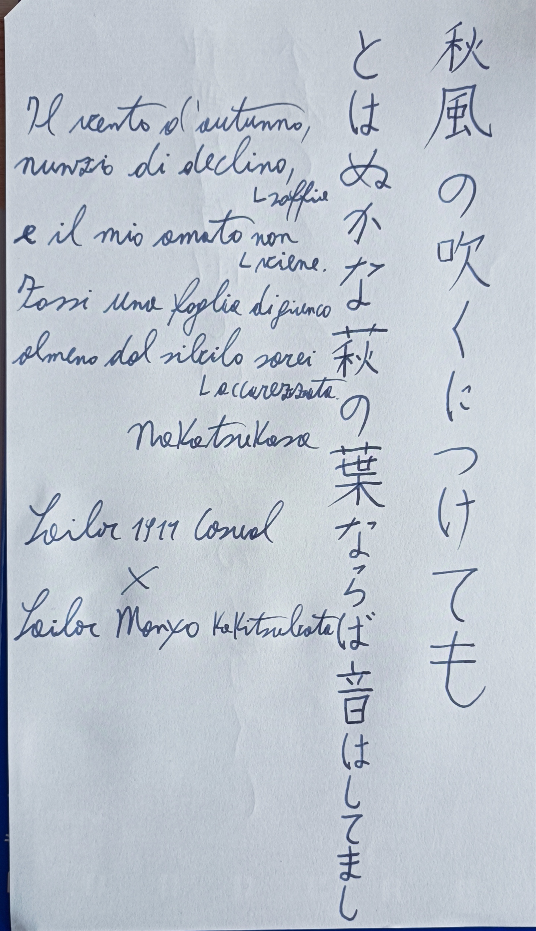 Ho avuto l'occasione di provarlo in un noto negozio romano e l'ho preso! È quello in acciaio della 1911 Profit Casual. Sto ancora facendo prove, ma mi pare che sia molto adatto a una scrittura posata in "stile pennello". comunque un pennino molto divertente e intrigante. Forse in futuro potrei farlo trasformare in naginata da un nibmaster, ma per il momento è perfetto così, è Sailor!