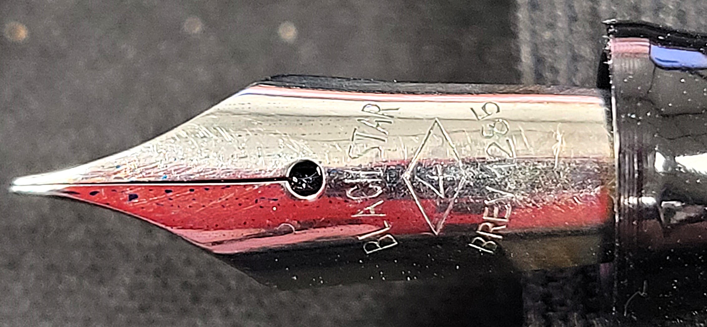 Dotata di un pennino in acciaio molto flessibile che riporta le scritte BLACH STAR ed il numero <4> racchiuso in un rombo (probabilmente la misura del pennino) e la scritta Brev.1285, sarebbe interessante sapere in cosa consista tale Brevetto.