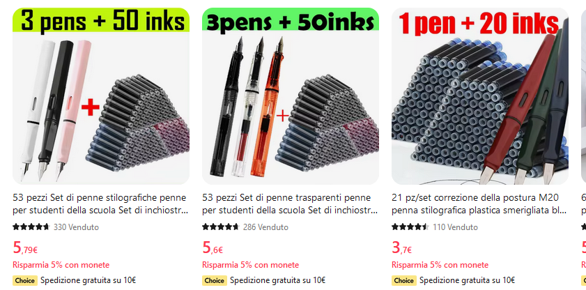 Mi è stato chiesto il link all'offerta delle simil-Lamy su aliexpress. Metto qui i riferimenti, a disposizione di chi voglia sperimentarle.