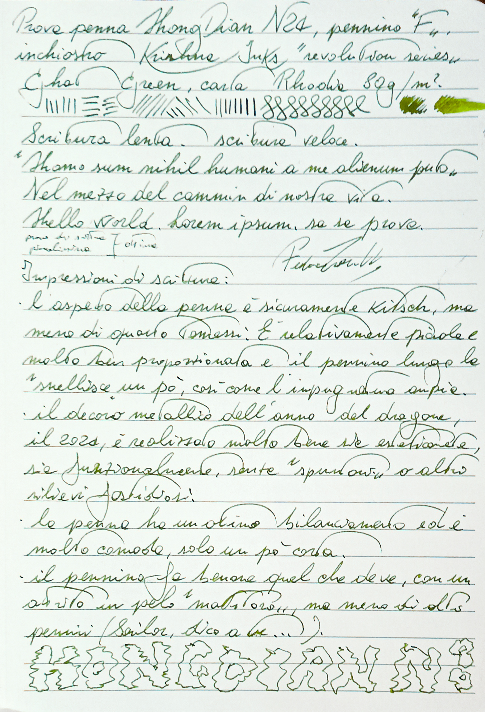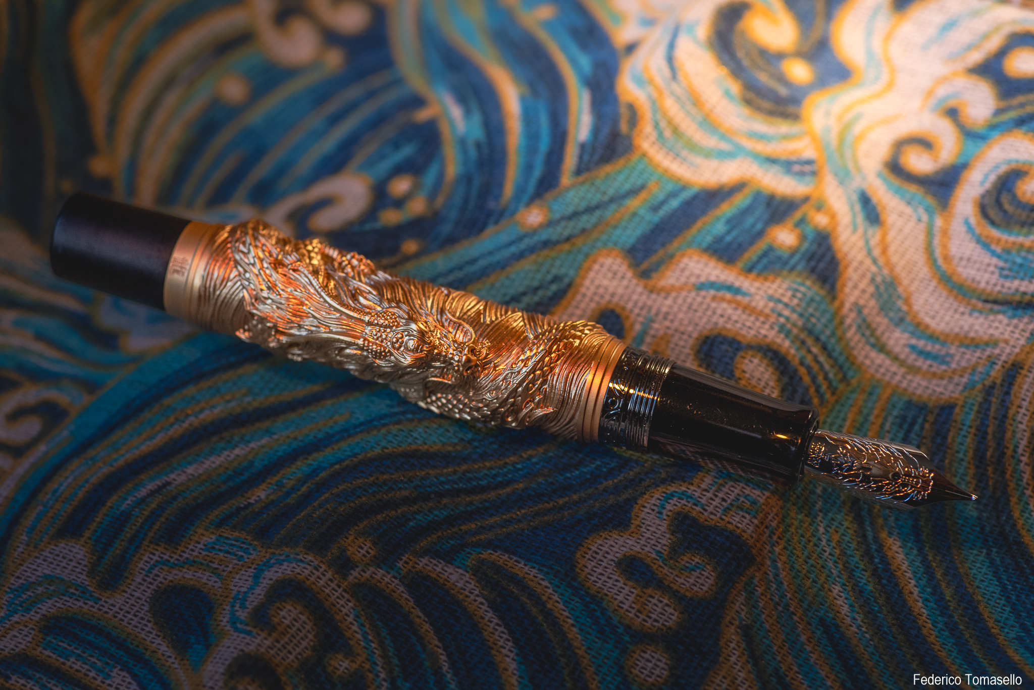 Il 2024, cioè l'anno del dragone, l'ho concluso così: convincendomi a comprare questa penna che pure mi sembrava orribilmente kitsch e ben poco attraente. Ma sull'altro piatto della bilancia c'era la N23 "Anno del Coniglio" che chiedeva insistentemente "CONTINUA LA SERIE, CONTINUA LA SERIE!!! NON TI FERMARE!" e quindi alla fine, complici i soliti sconti carpiati ritornati, l'ho ordinata. In attesa che esca fuori la N25 dell'anno del serpente.