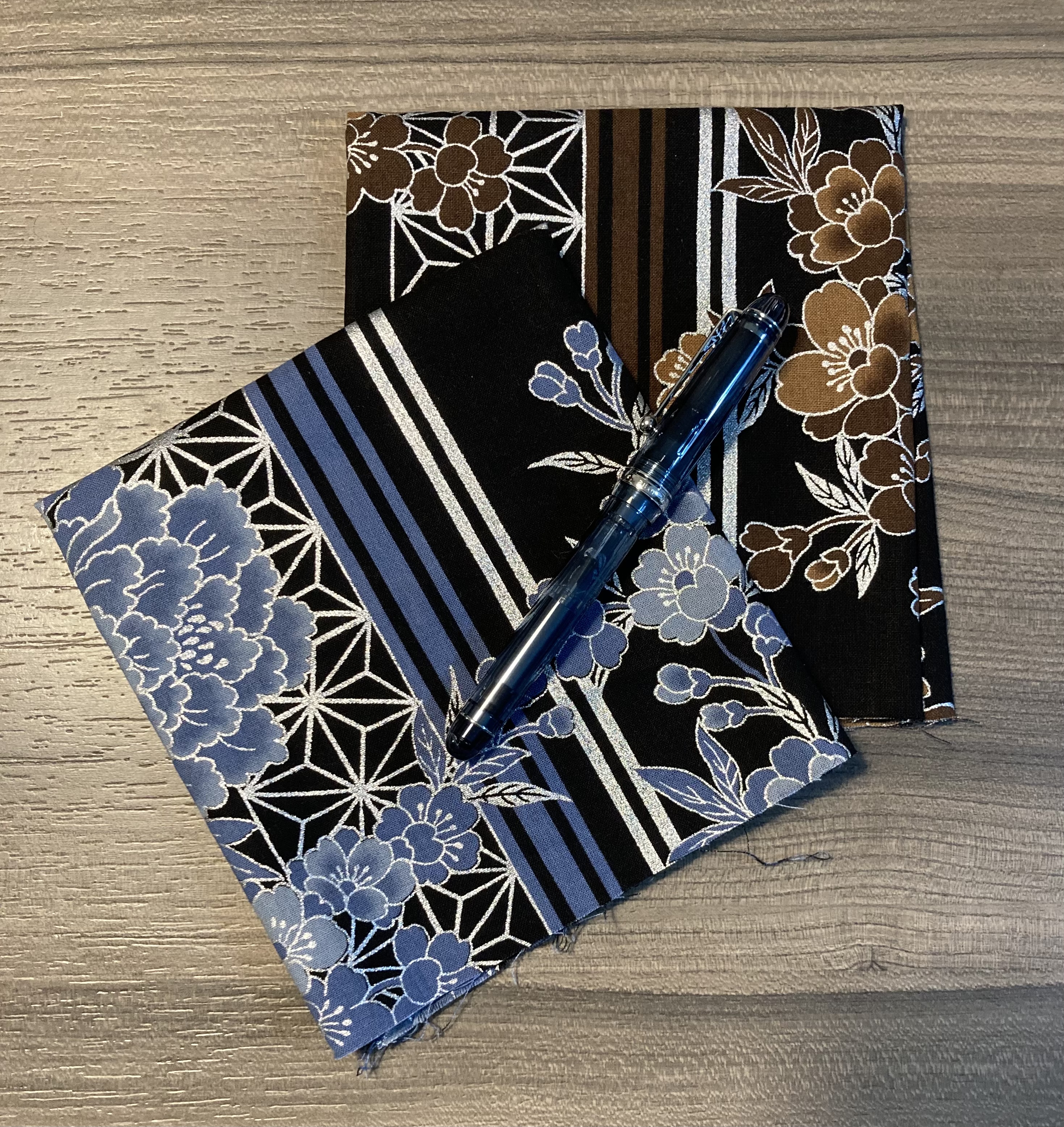 Custom 74 in colore Deep Blue demonstrator, EF. In foto, accompagnata da stoffe giapponesi prese ieri al Brixia Forum alla fiera dell’Oriente: pensavo di farci dei portapenne da borsa.. Vedrò