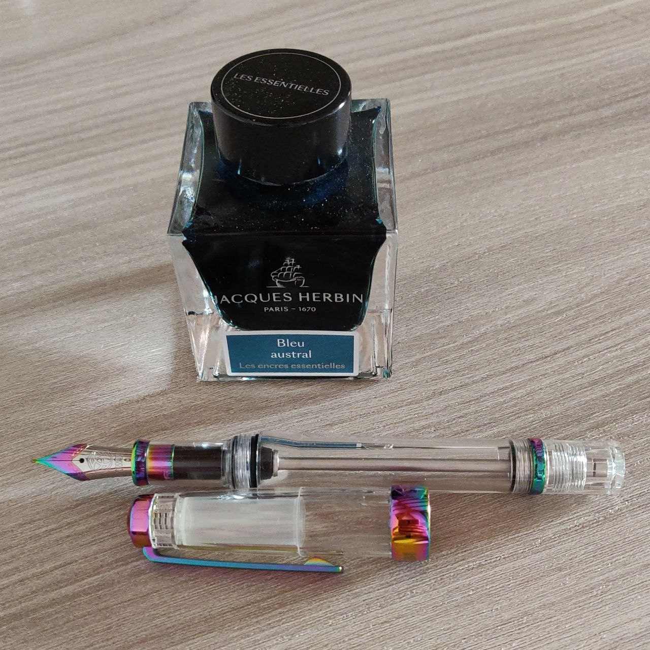 TWSBI VAC700R Iris Limited Edition pennino M, caricata con Jacques Herbin Blue Austral.